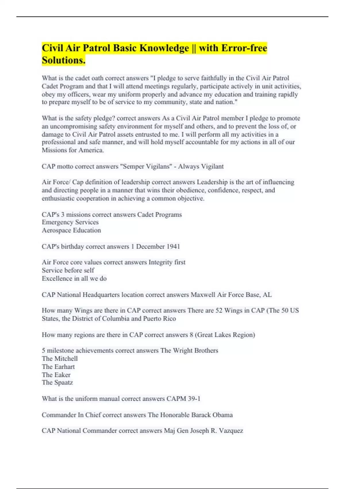 Civil Air Patrol Basic Knowledge || with Error-free Solutions.