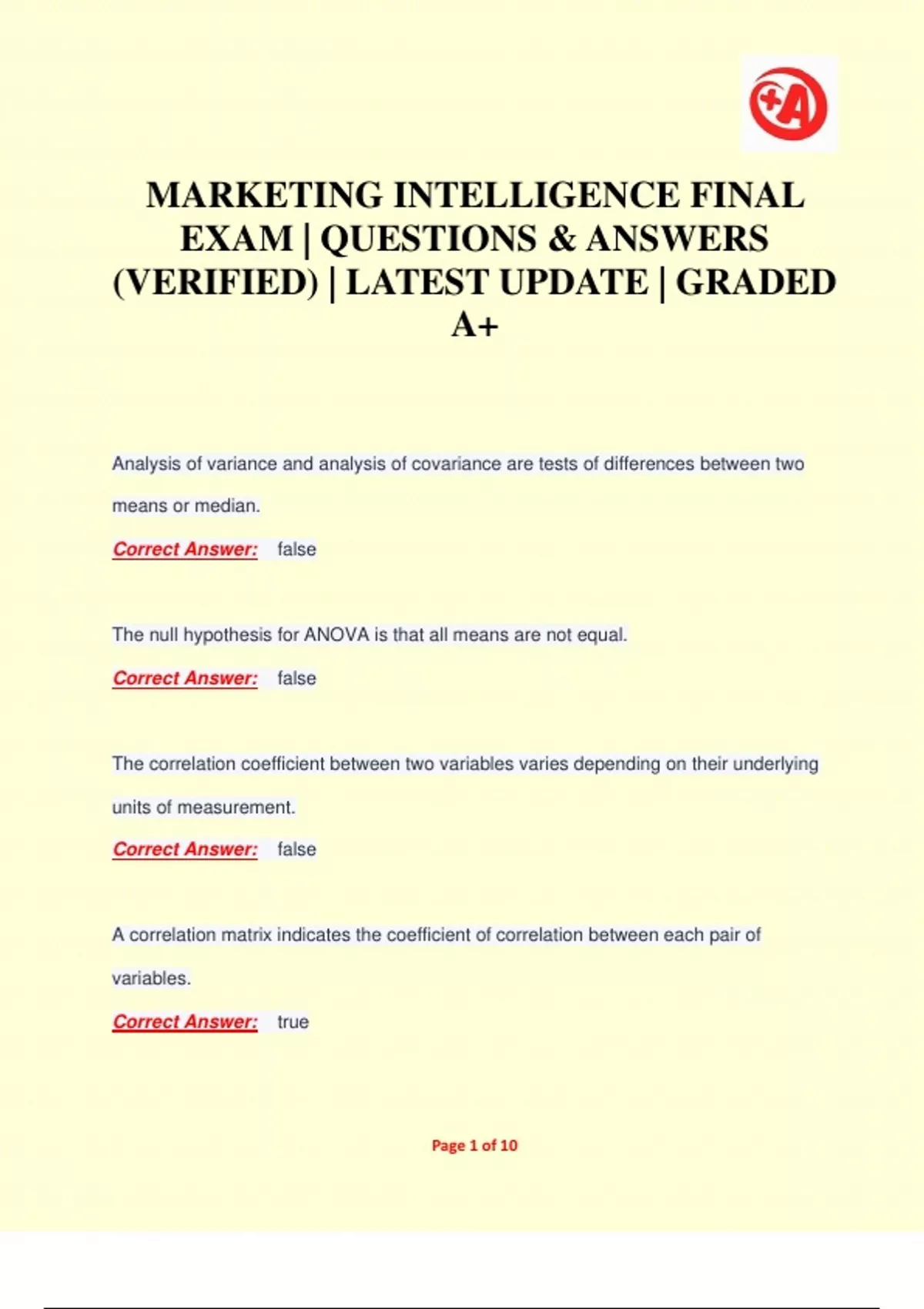 MARKETING INTELLIGENCE FINAL EXAM | QUESTIONS & ANSWERS (VERIFIED) | LATEST UPDATE | GRADED A+