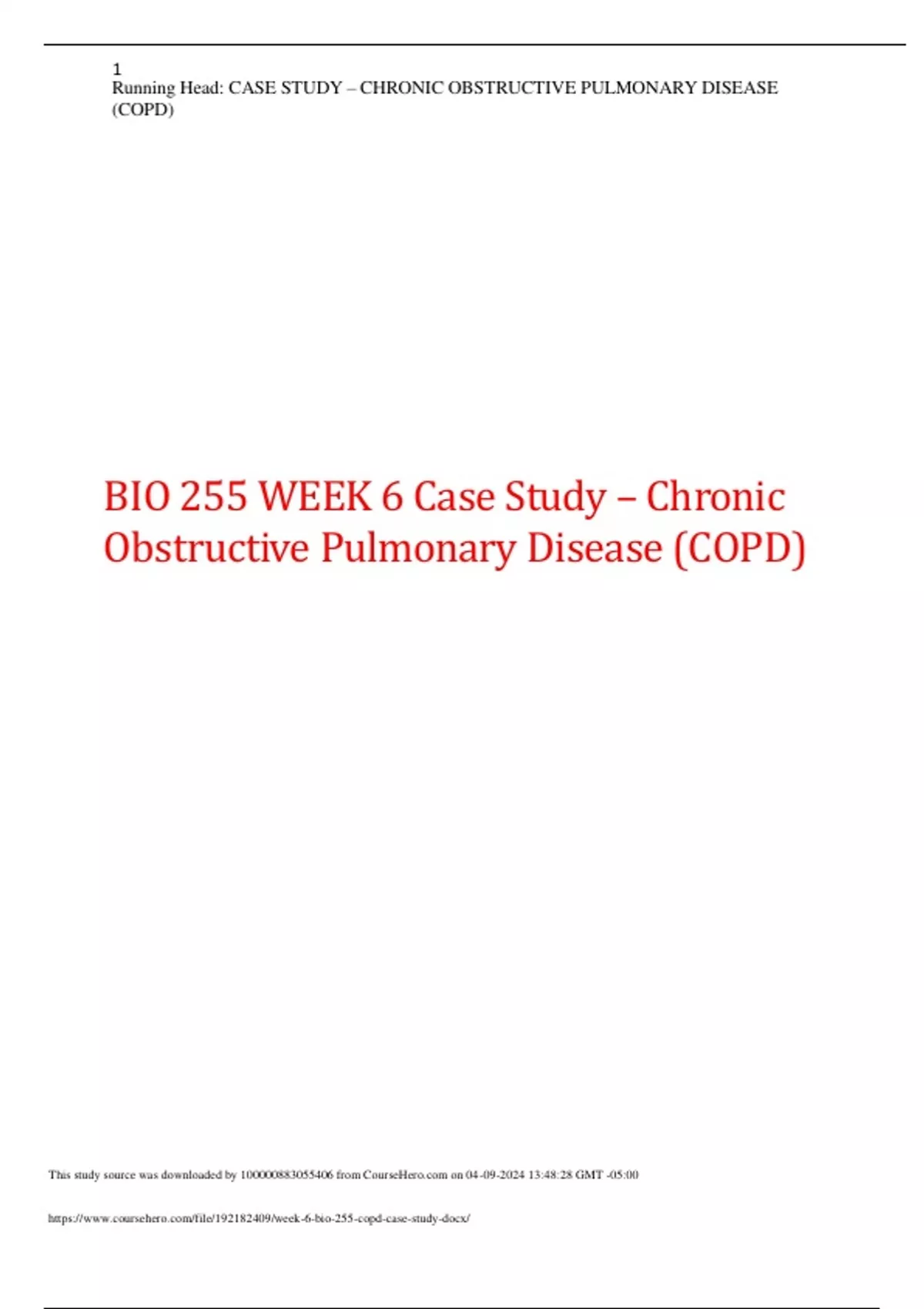 BIO 255 WEEK 6 Case Study – Chronic Obstructive Pulmonary Disease (COPD)