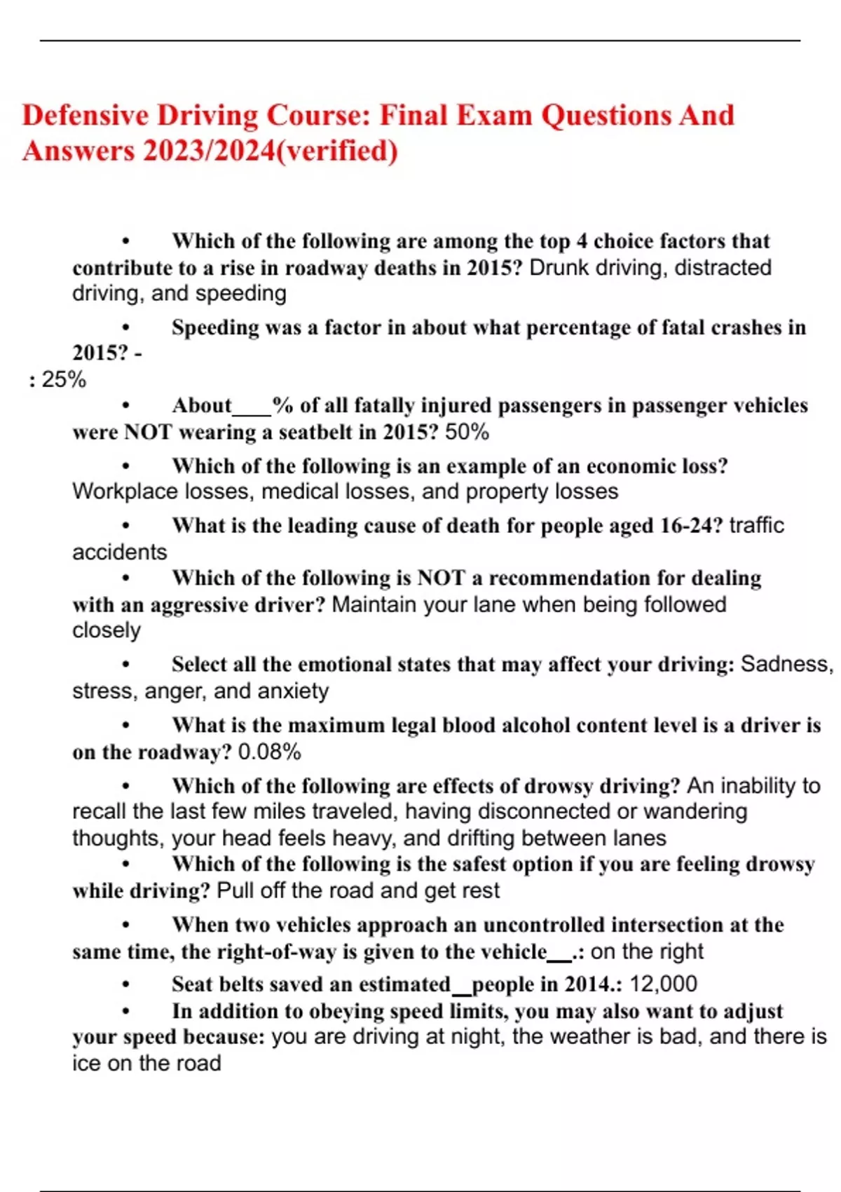 Defensive Driving 2024 Questions and Answers 100% Verified Answers.