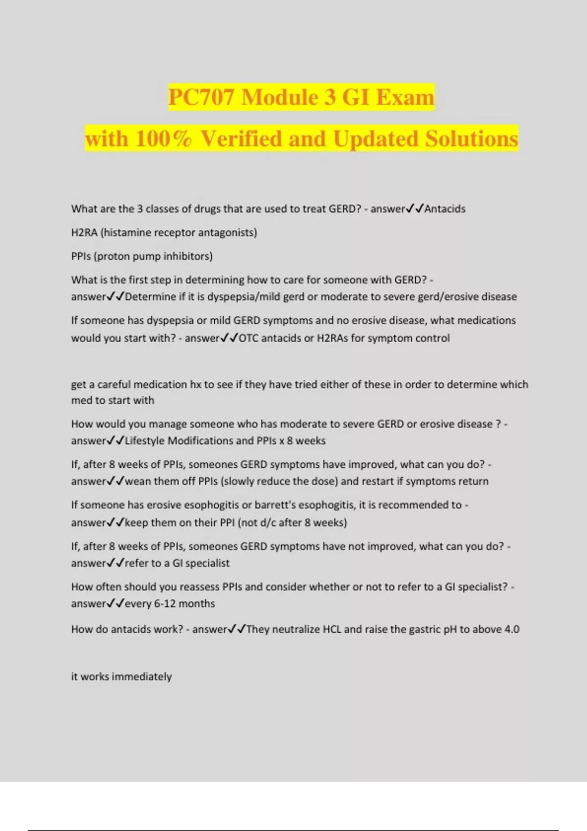 PC707 Module 3 GI Exam with 100% Verified and Updated Solutions