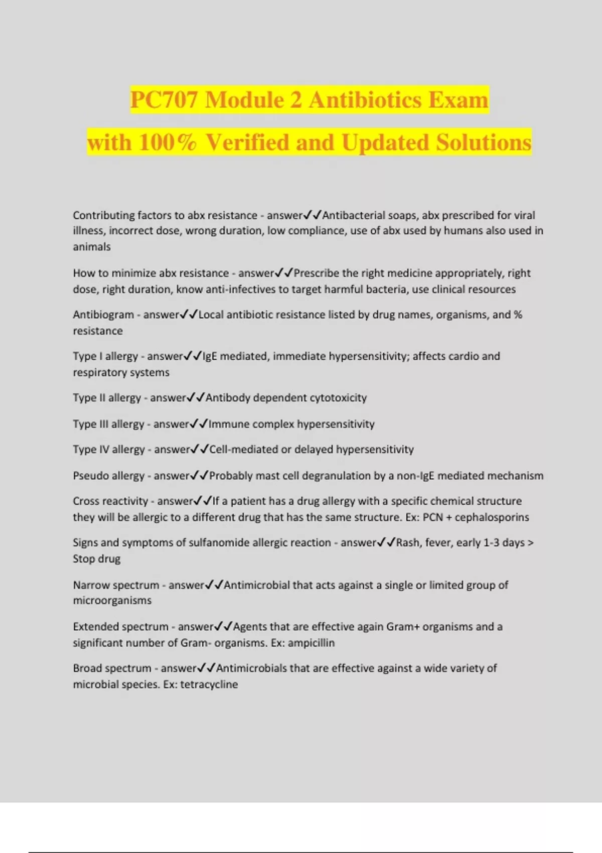PC707 Module 2 Antibiotics Exam with 100% Verified and Updated Solutions
