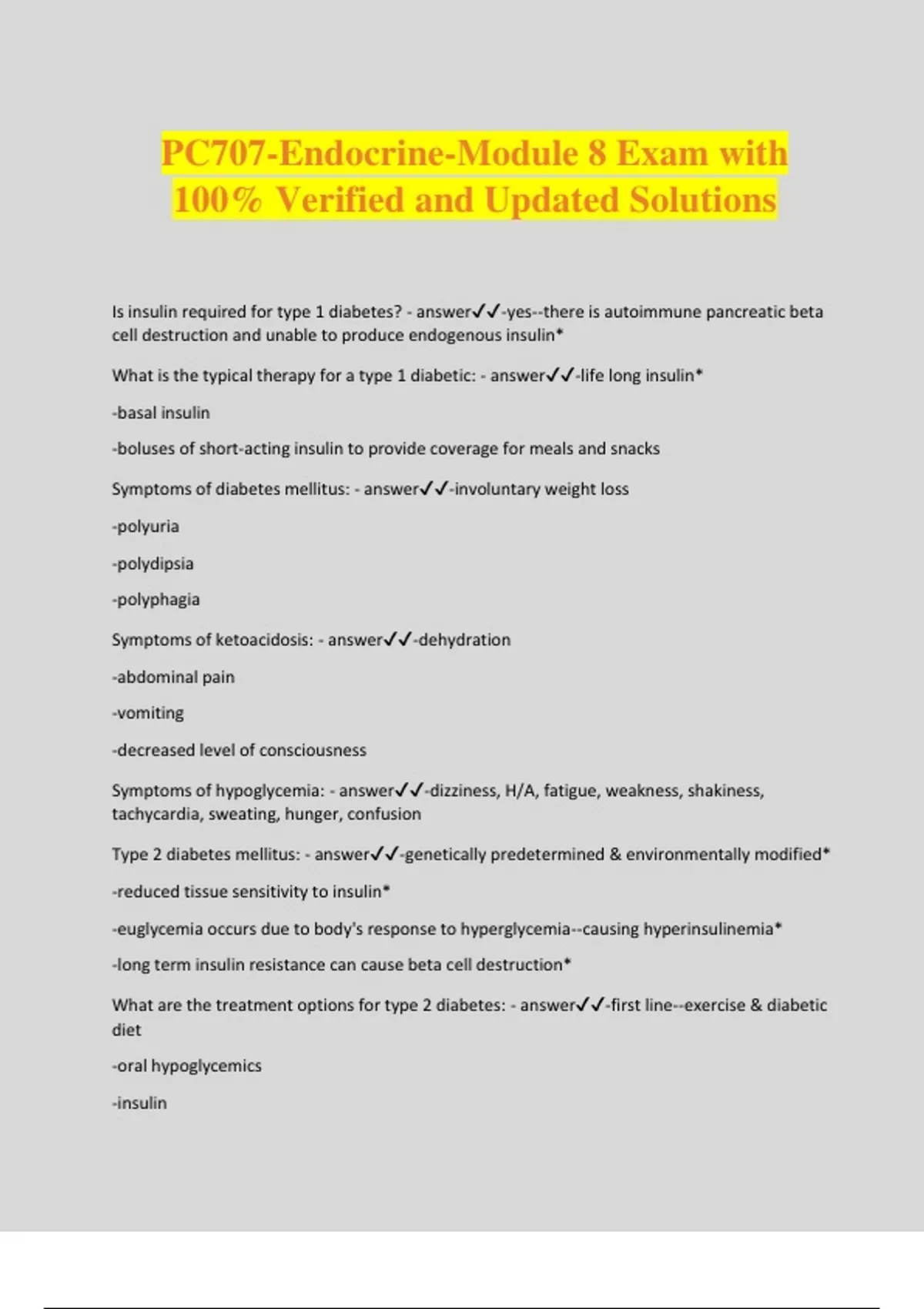 PC707-Endocrine-Module 8 Exam with 100% Verified and Updated Solutions