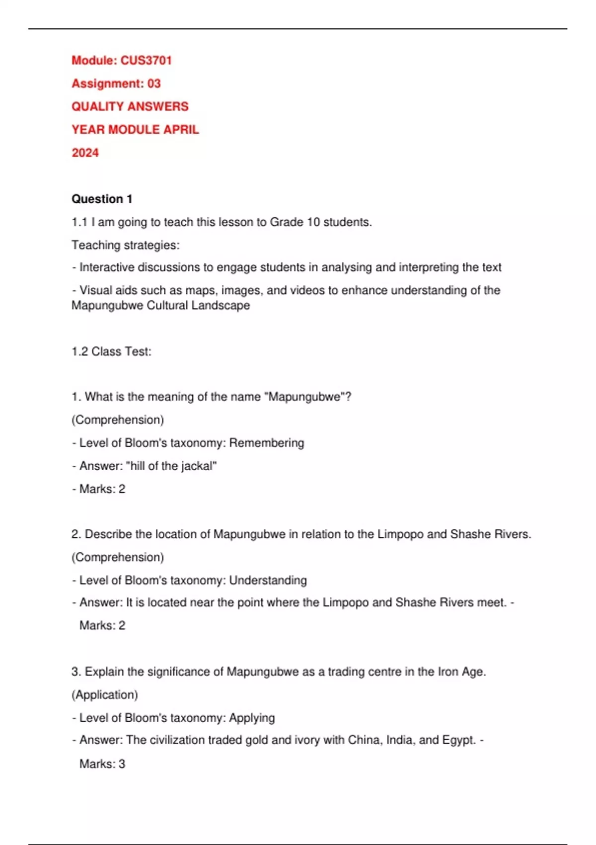 3. Explain the significance of Mapungubwe as a trading centre in the Iron Age.
