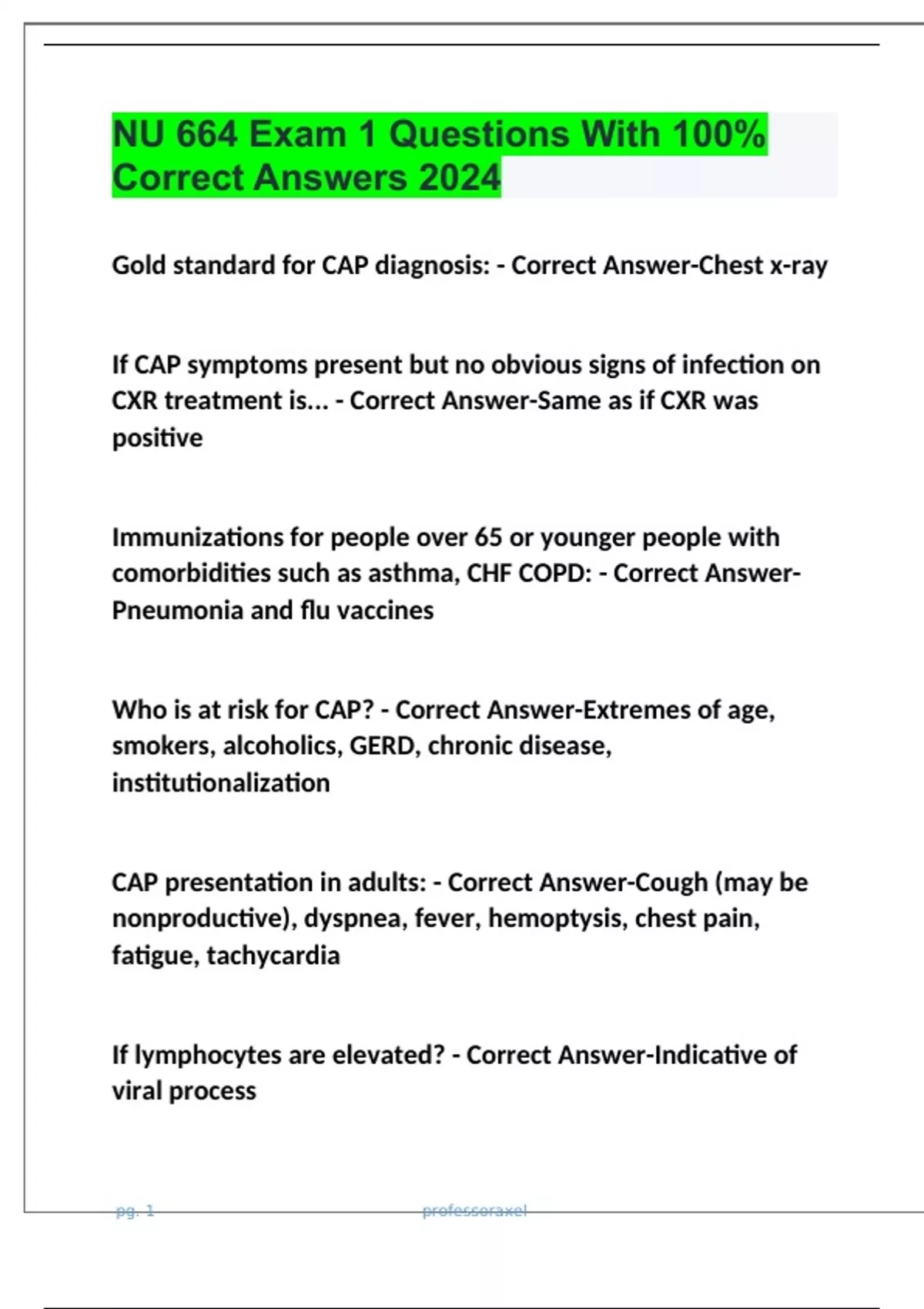 nu 664 exam 1 questions with 100 correct answers