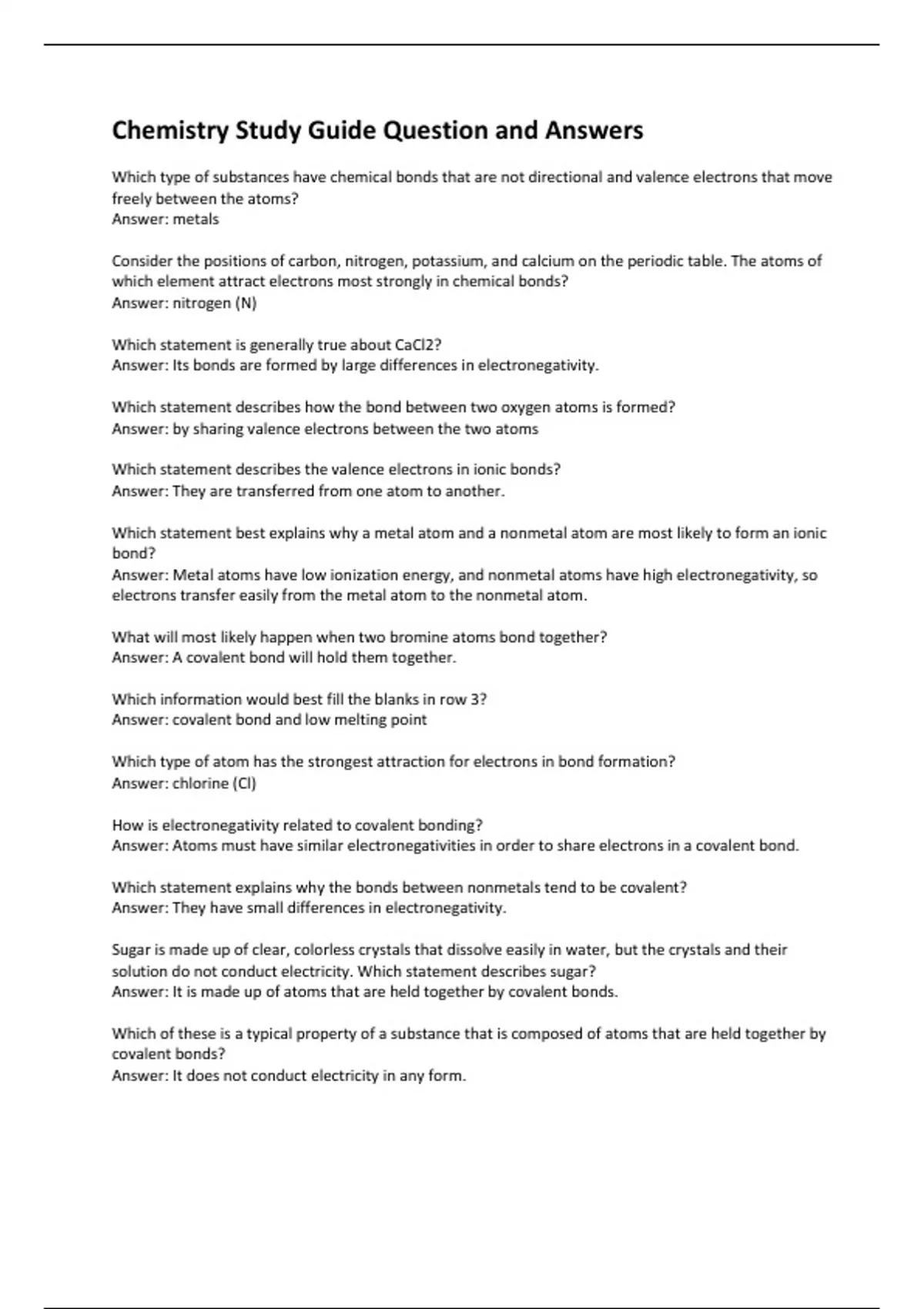 Chemistry Study Guide Question and Answers Chemistry notes pdf Chemistry question and answers Chemistry revision test Chemistry Study guide Chemistry exam review test Introduction to chemistry