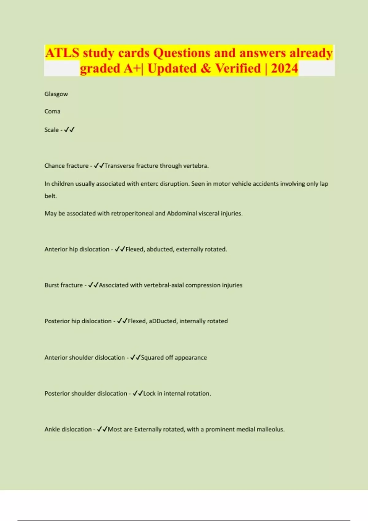 ATLS study cards Questions and answers already graded A+| Updated & Verified | 2024