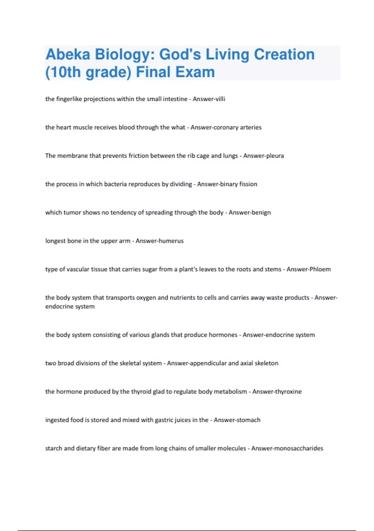 Abeka Biology: God's Living Creation (10th grade) Final Exam Questions and Answers 2024 Complete;100%