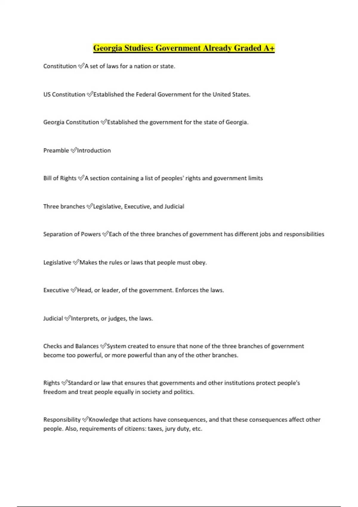 georgia studies government already graded a
