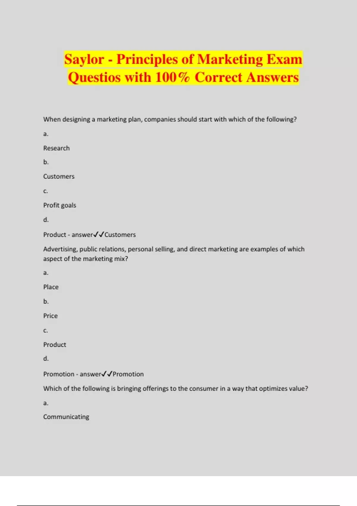 Saylor - Principles of Marketing Exam Questios with 100% Correct Answers