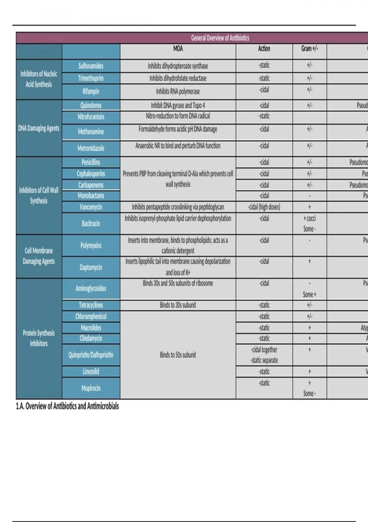 Review of pathophysiology, mechanism of action, side effects, and dosing for medications for indication and utilization of antibiotics.