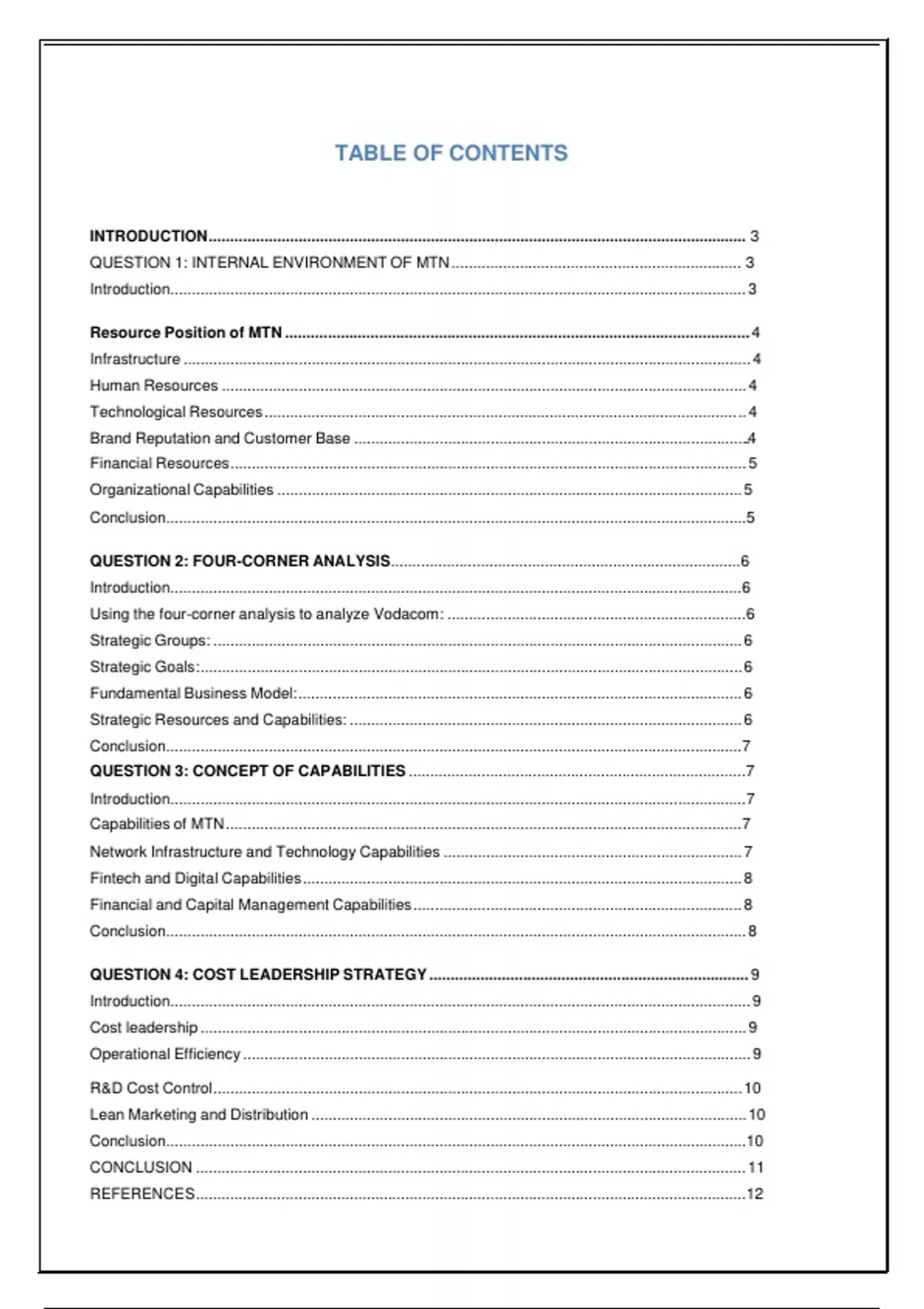 QUESTION 1: INTERNAL ENVIRONMENT OF MTN .................................................................... 3