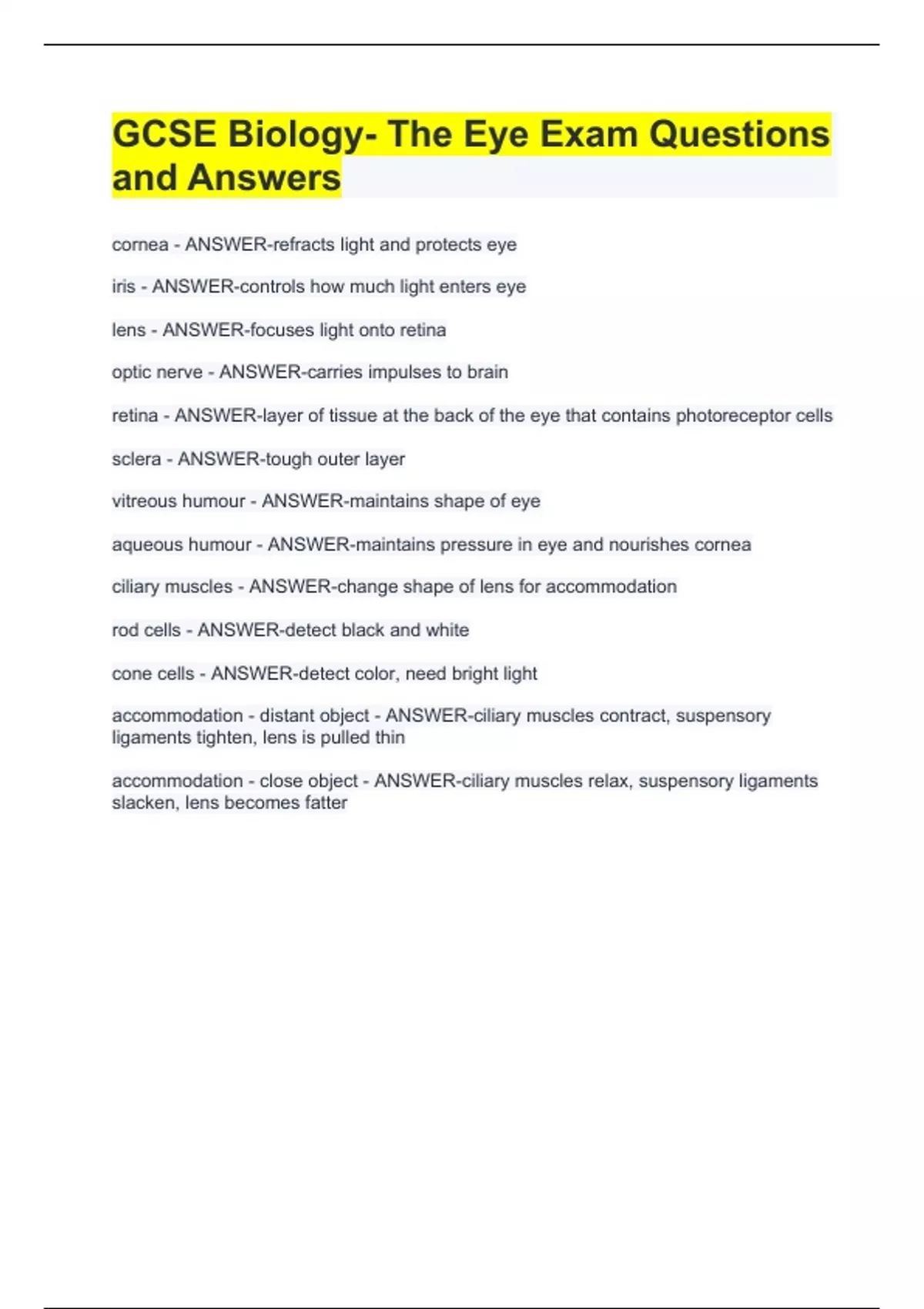 ciliary muscles - ANSWER-change shape of lens for accommodation