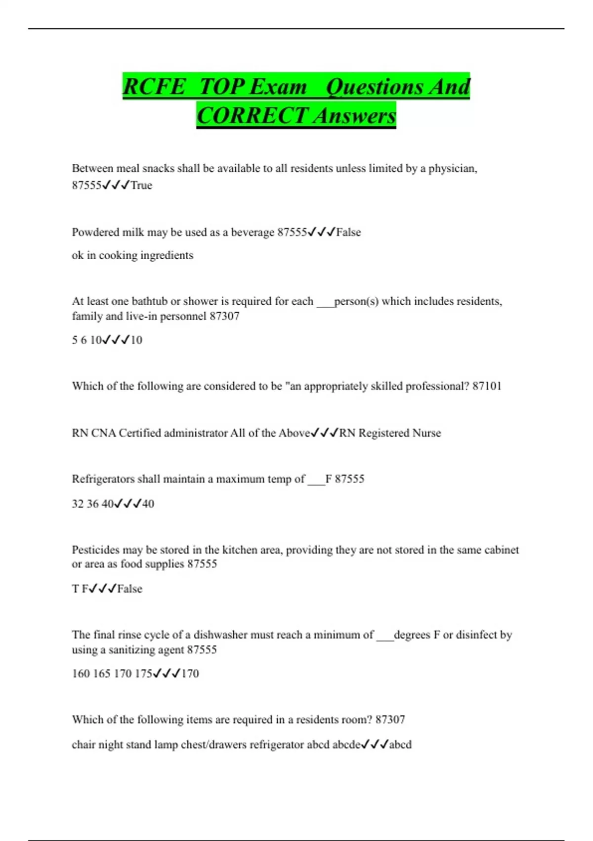 RCFE TOP Exam Questions And CORRECT Answers