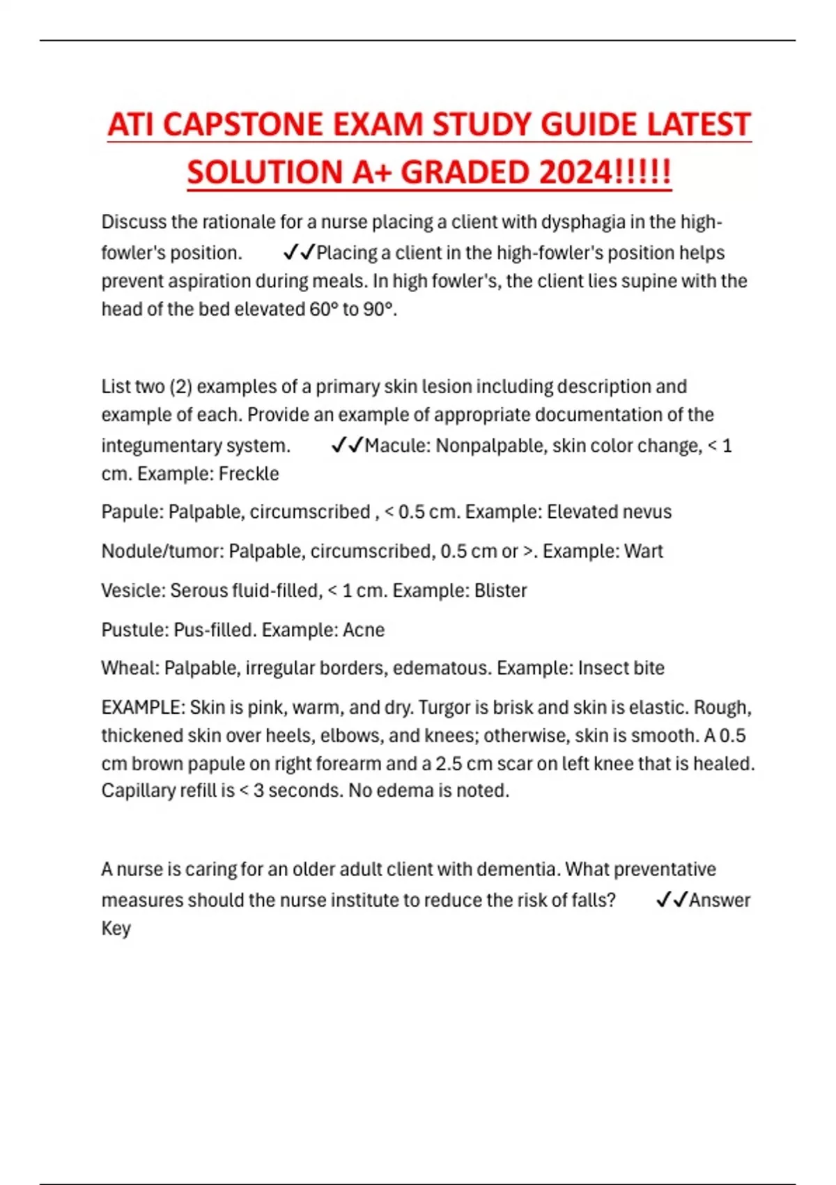 ATI CAPSTONE EXAM STUDY GUIDE LATEST SOLUTION A+ GRADED 2024!!!!!