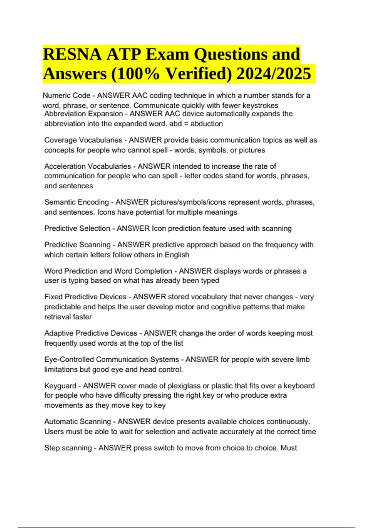 RESNA ATP Exam Questions and Answers (100% Verified) 2024/2025.