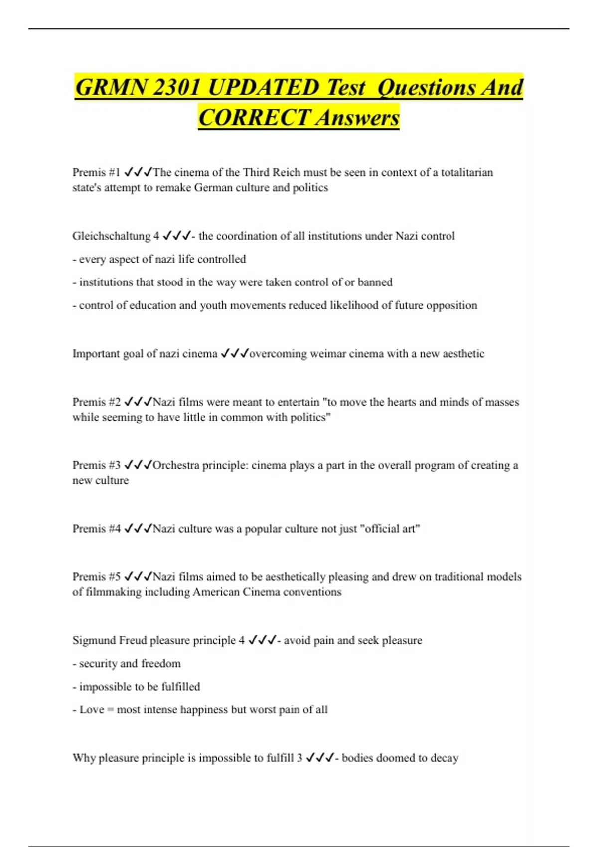 GRMN 2301 UPDATED Test Questions And CORRECT Answers