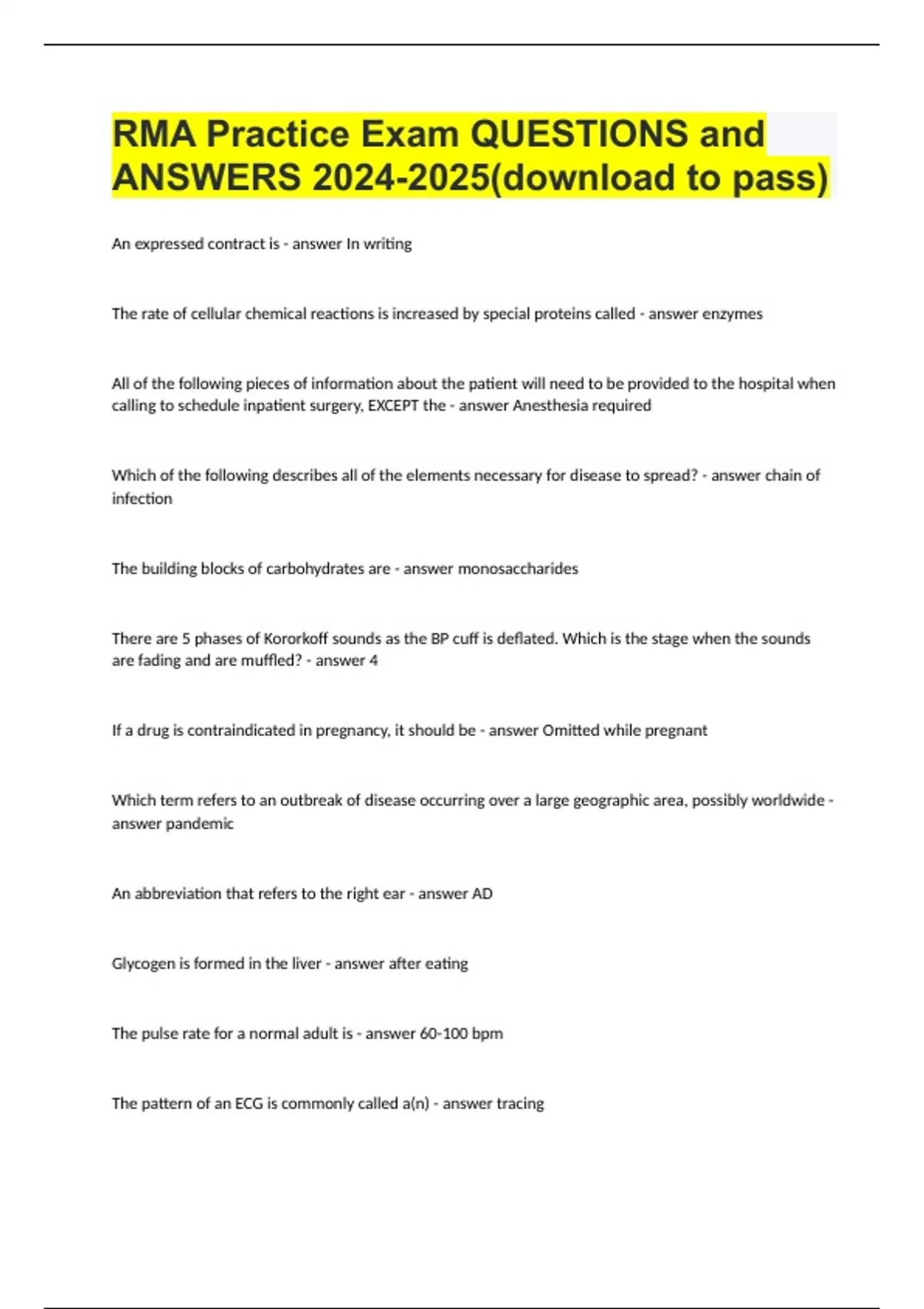 RMA Practice Exam QUESTIONS and ANSWERS (download to pass)