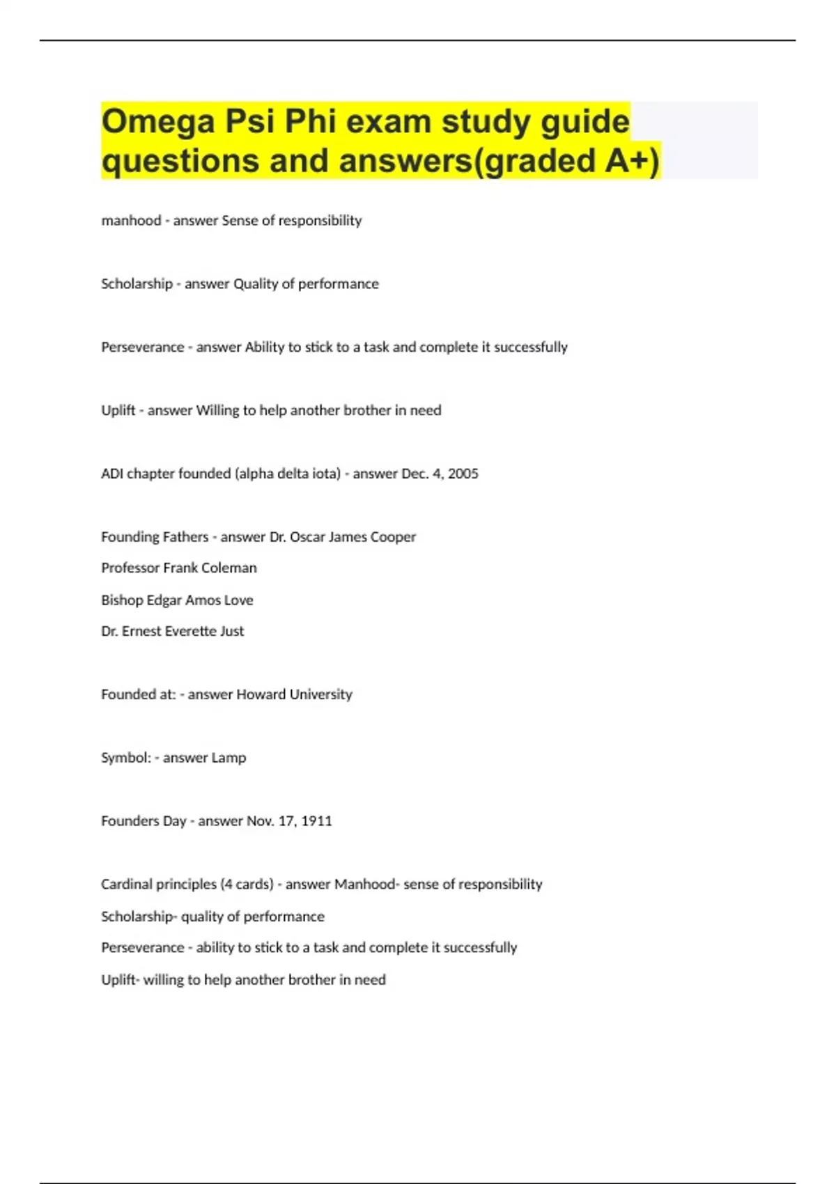 omega psi phi exam study guide questions