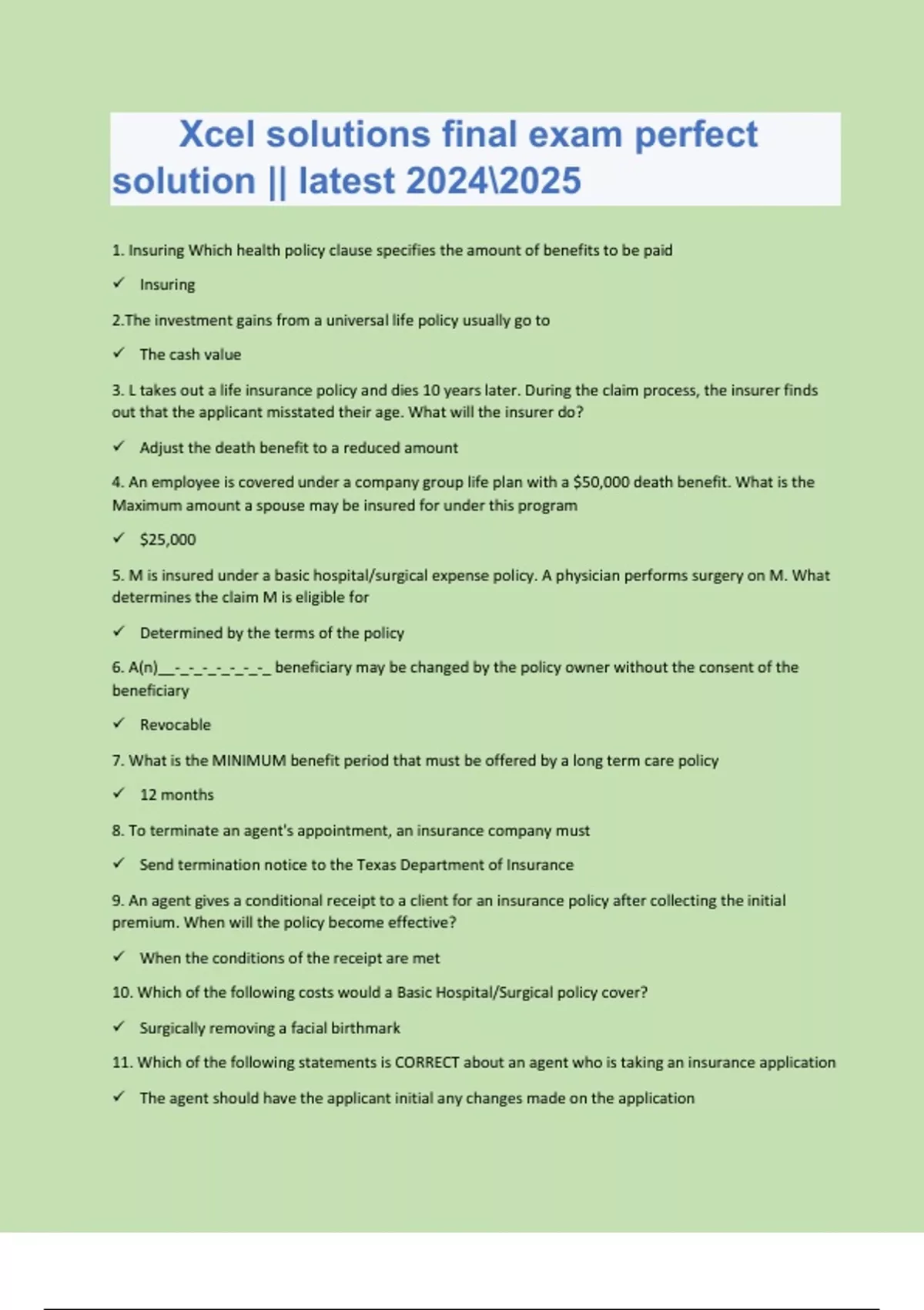 Xcel solutions final exam perfect solution || latest