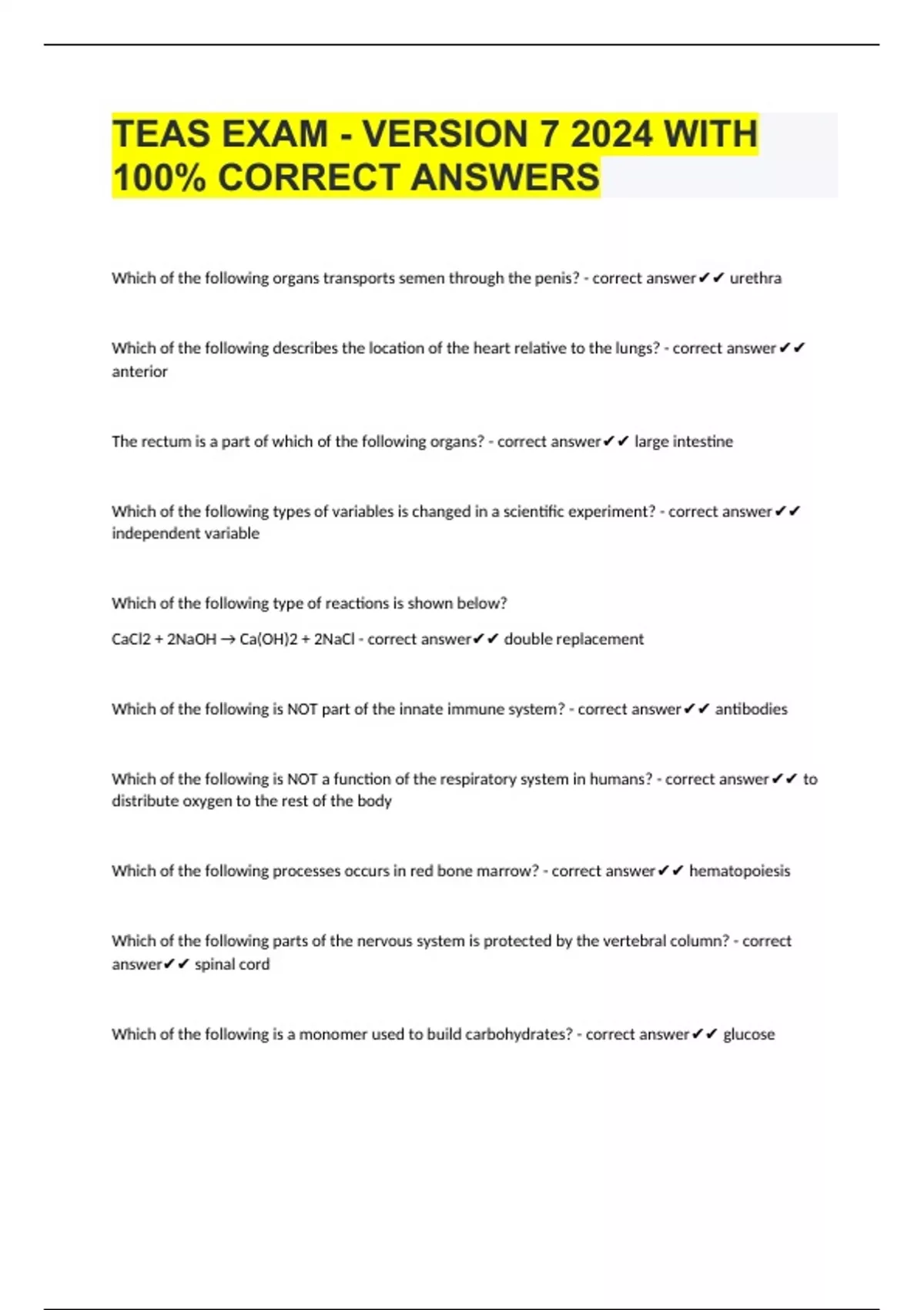 TEAS EXAM - VERSION 7 2024 WITH 100% CORRECT ANSWERS