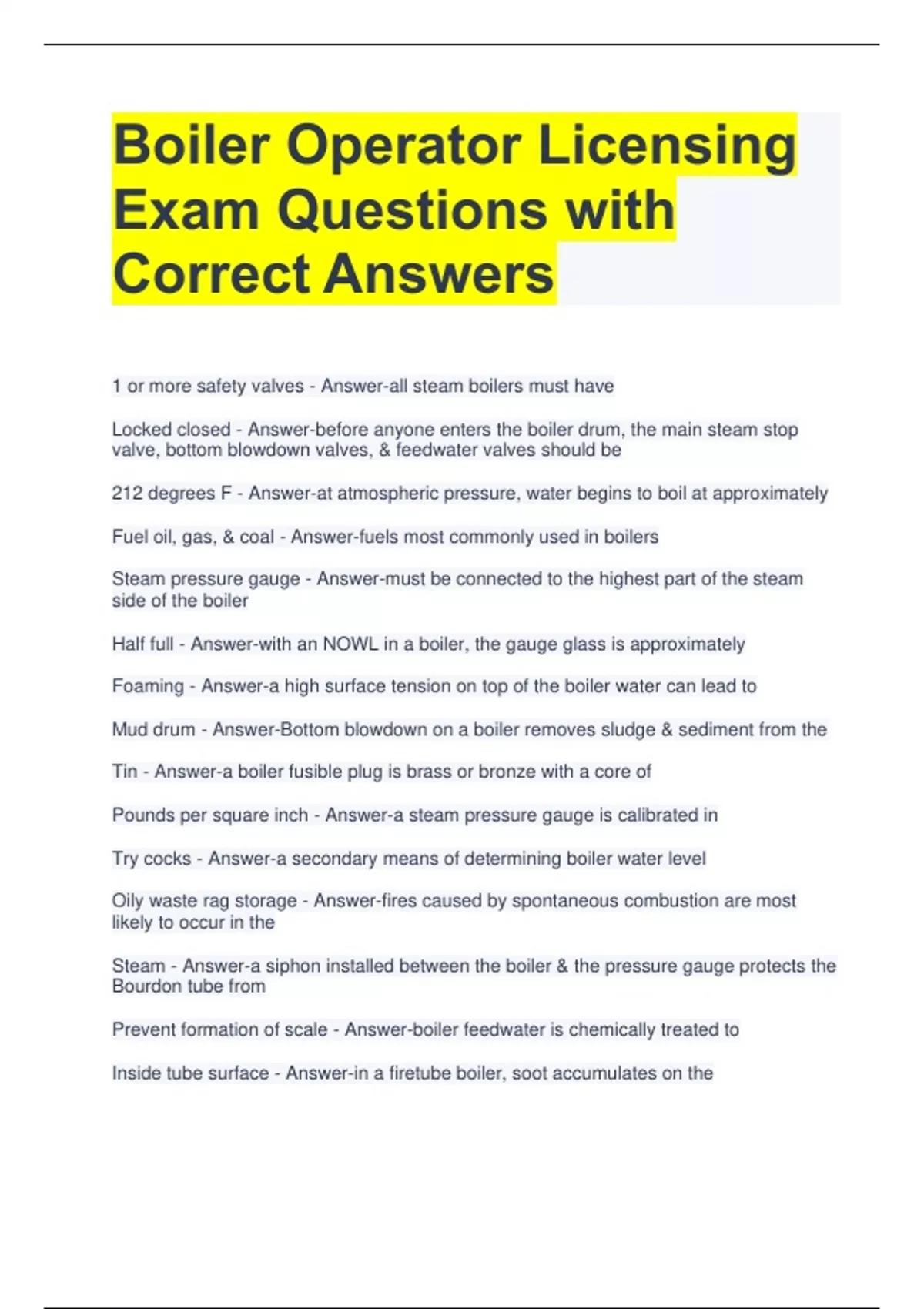 Boiler Operator Licensing Exam Questions with Correct Answers