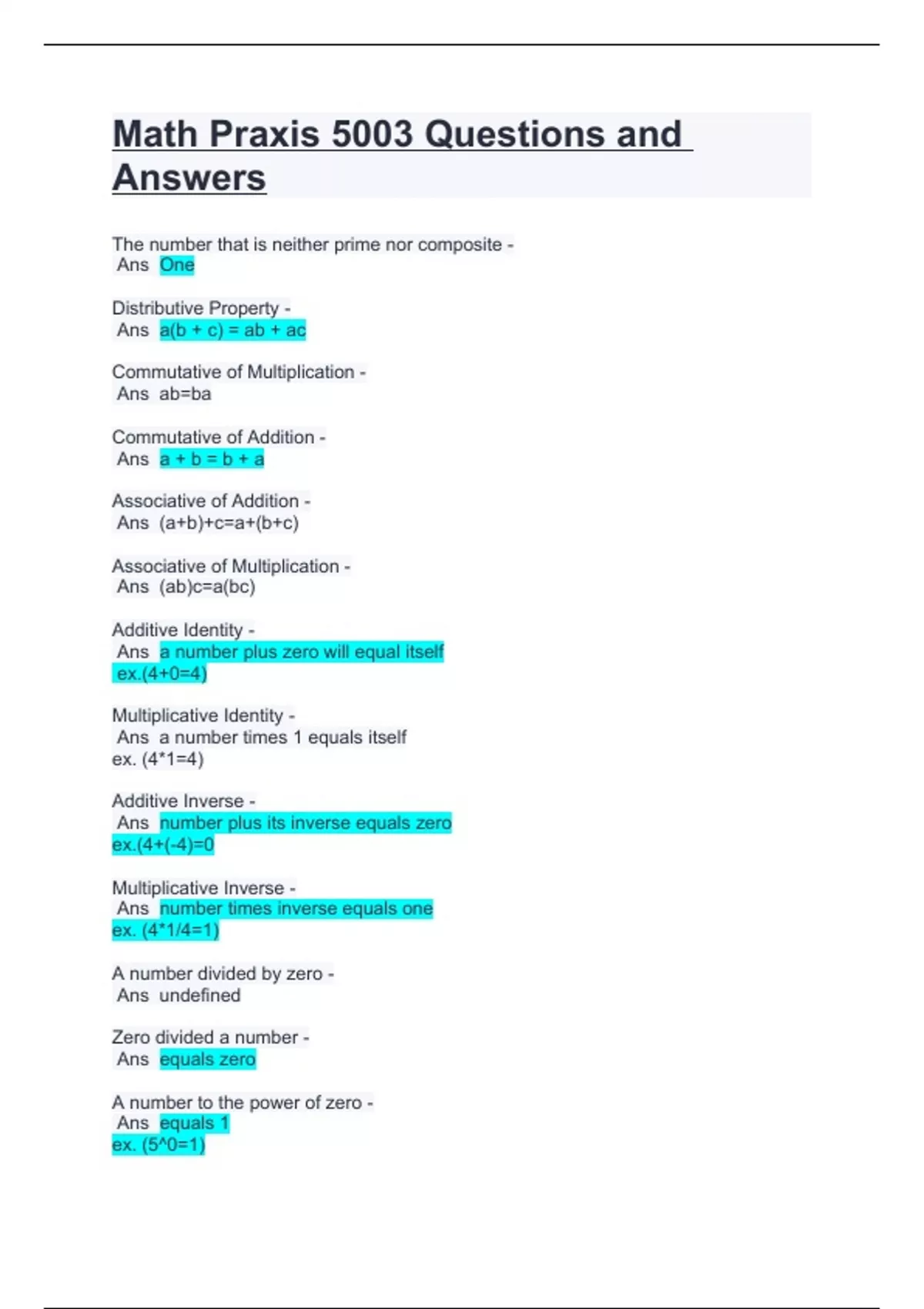 Math Praxis 5003 Questions and Answers.