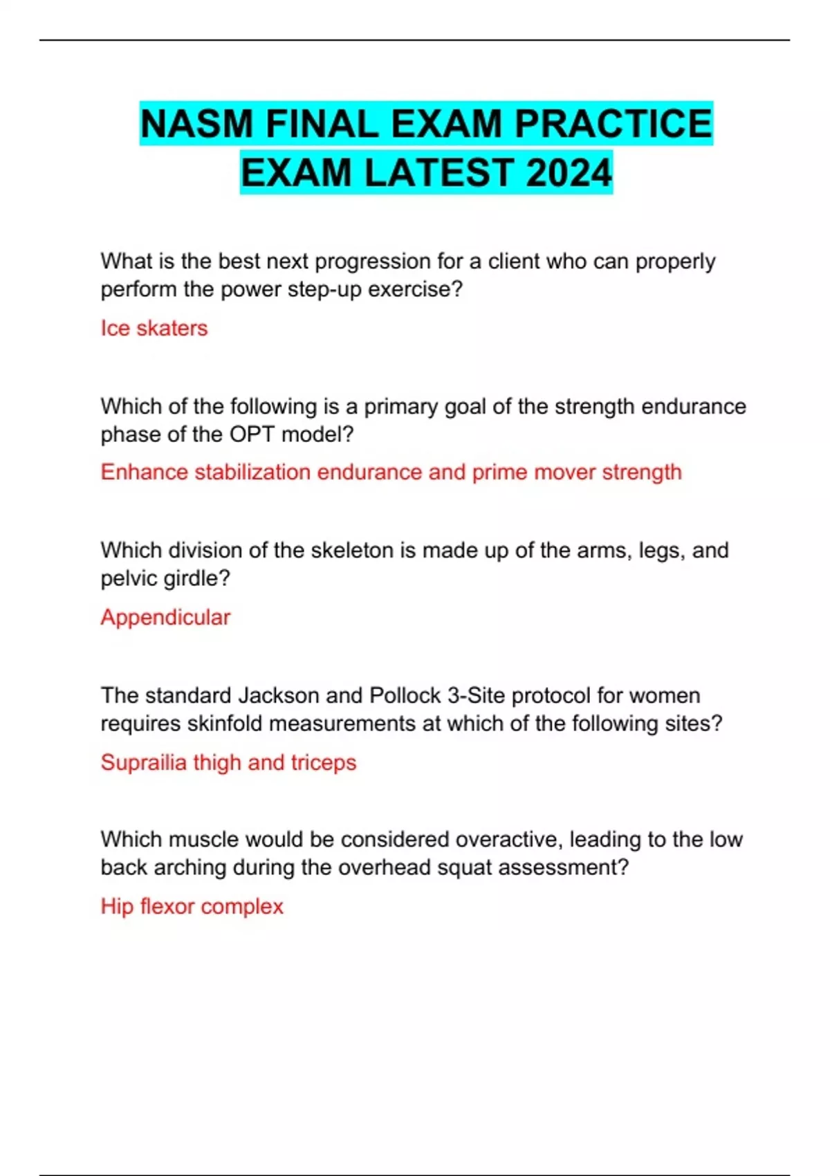 NASM FINAL EXAM PRACTICE EXAM LATEST 2024 | Answered and Graded A+