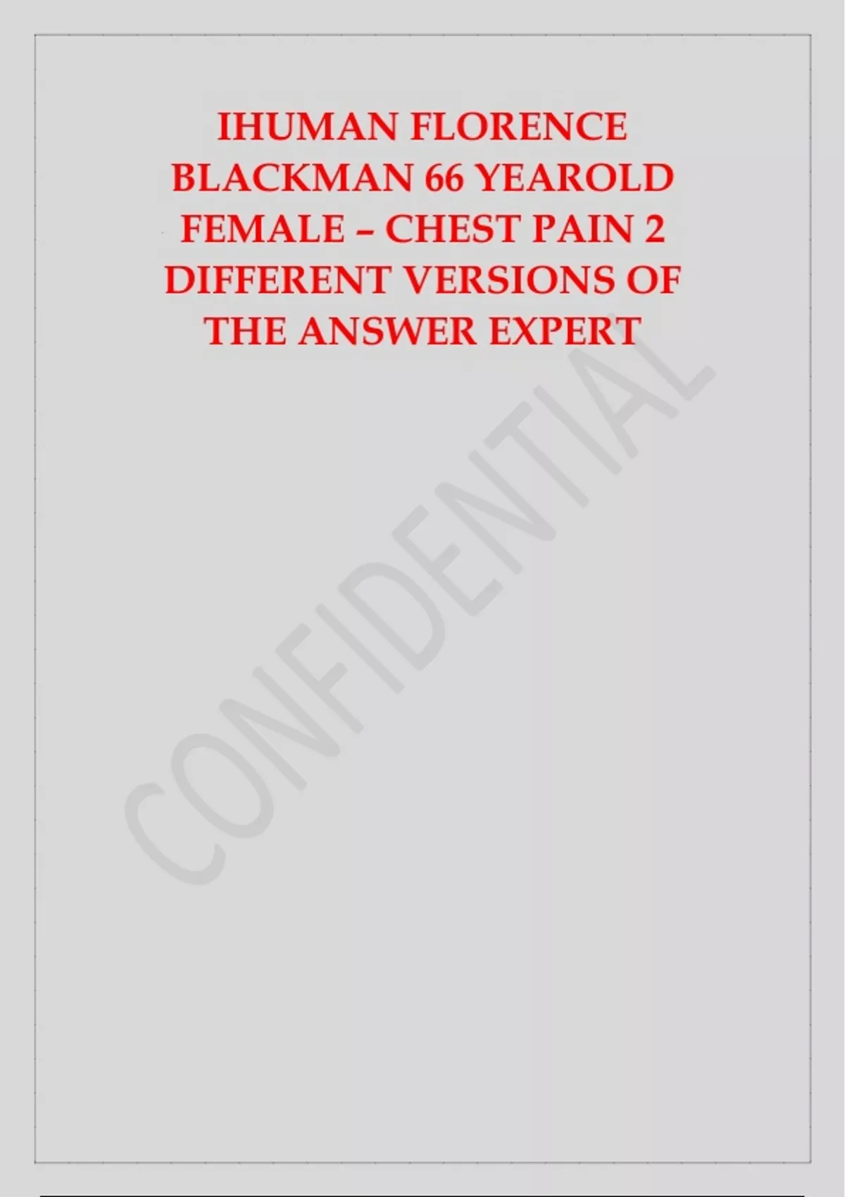 Summary Florence Blackman (66 y/o female) – Chest Pain. Case Study. Complete Solution