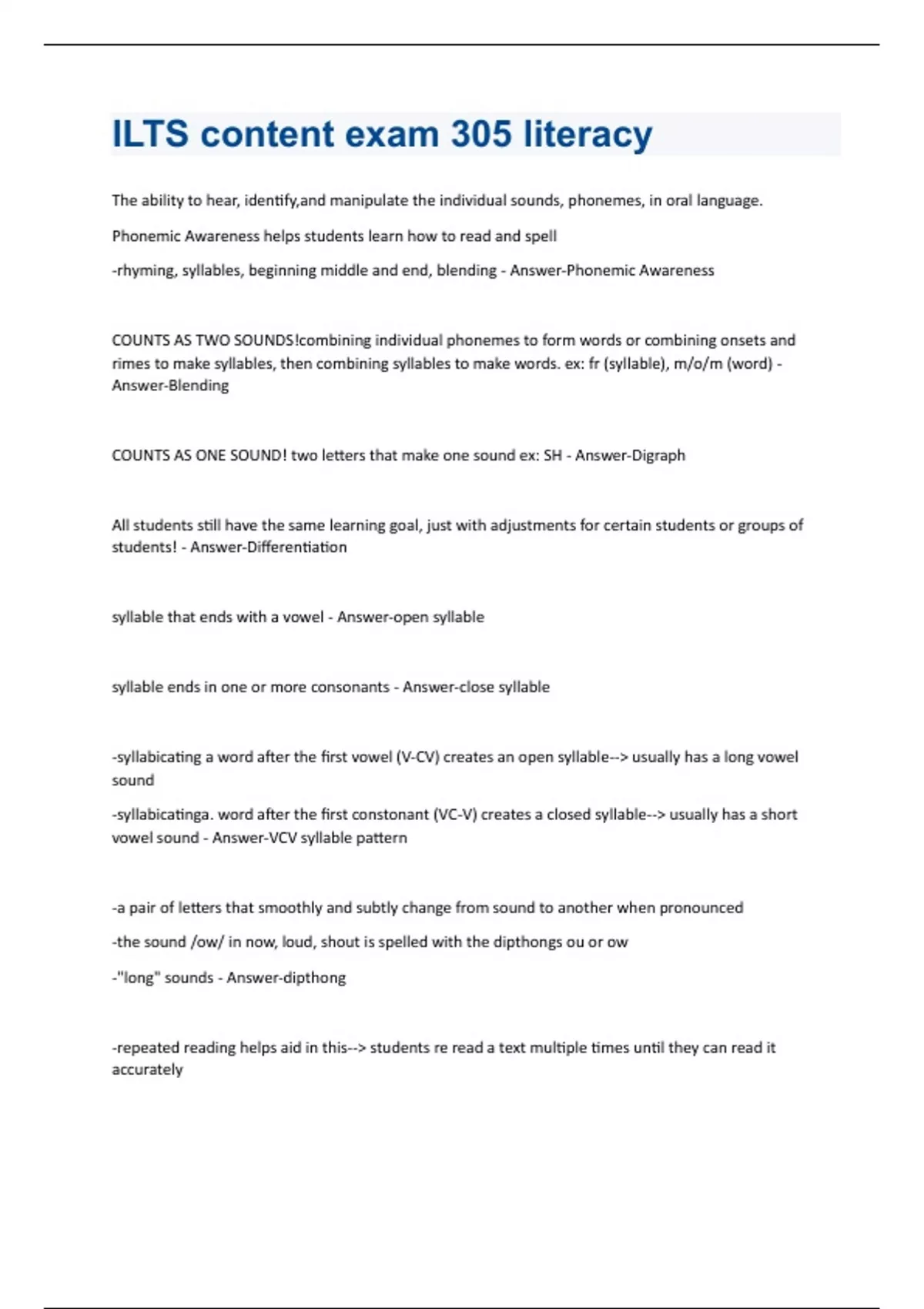 ILTS content exam 305 literacy (Questions + Answers) Verified 100% Correct!!.