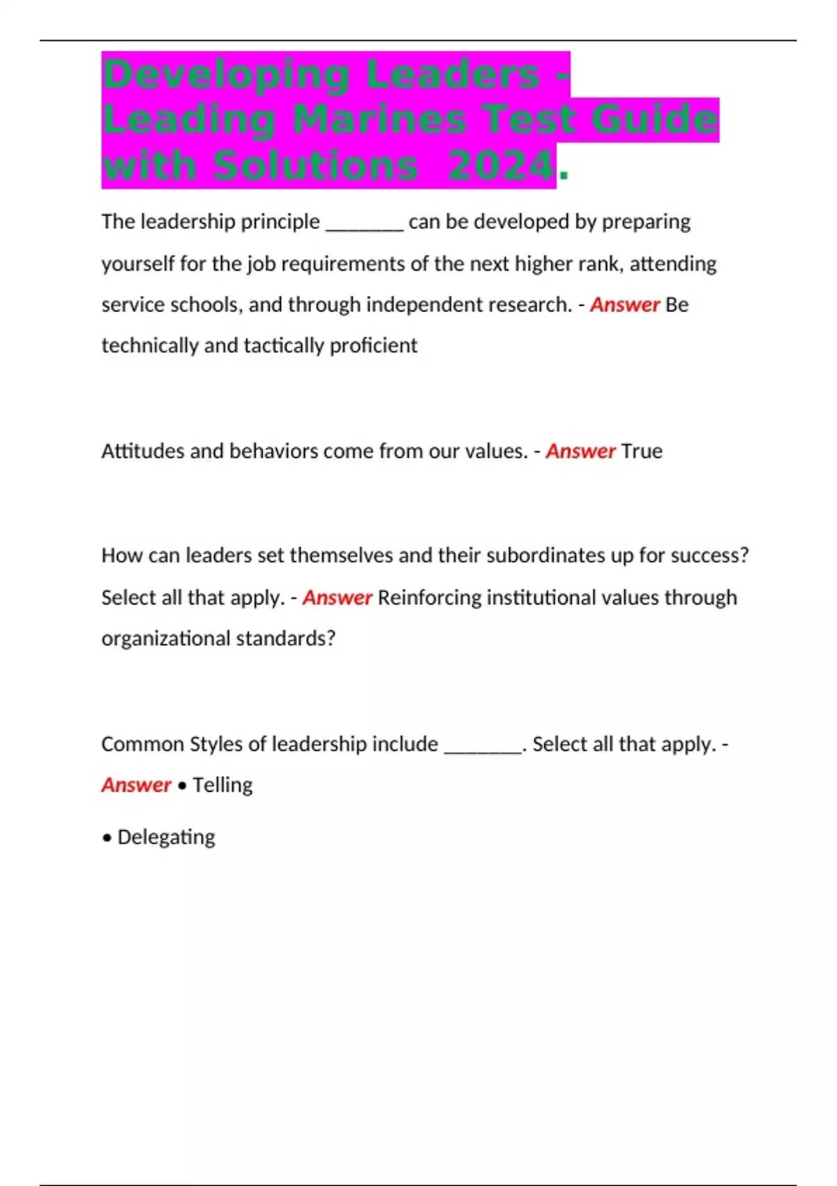 Developing Leaders - Leading Marines Test Guide with Solutions 2024.
