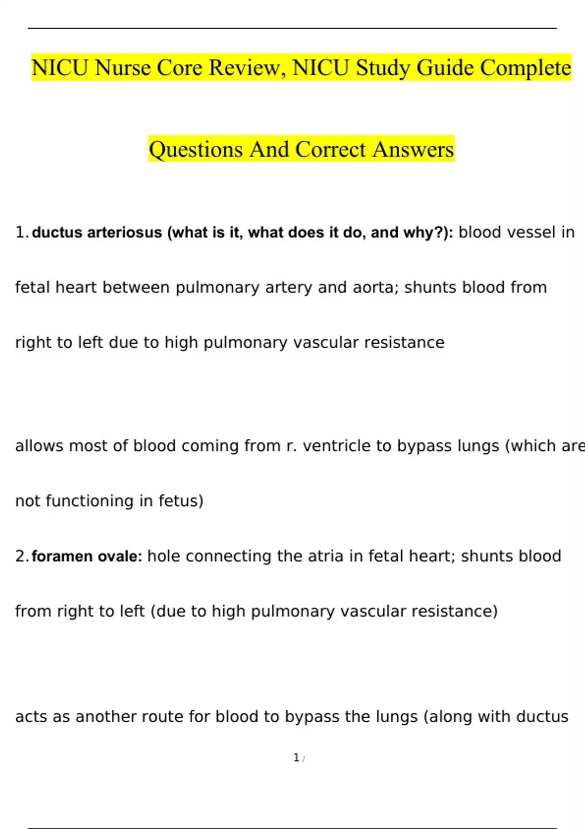 NICU Nurse Core Review, NICU Study Guide Complete Questions And Answers