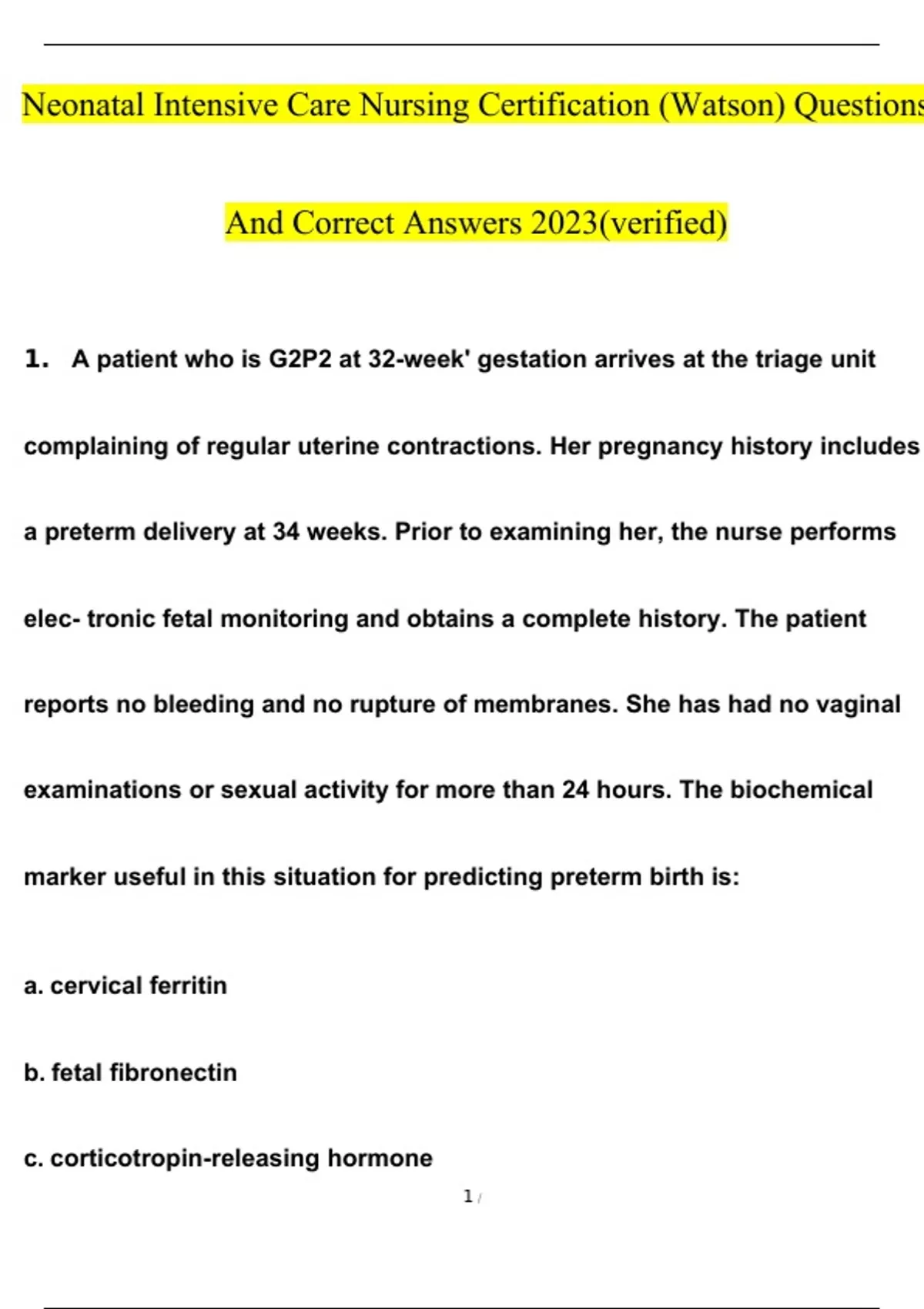 Neonatal Intensive Care Nursing Certification (Watson) Questions And Answers 2023