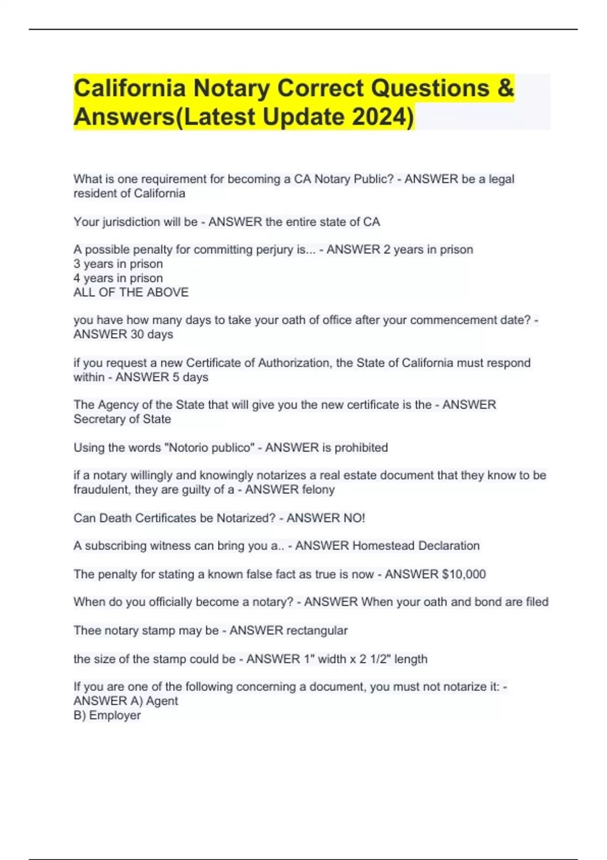 California Notary Correct Questions & Answers(Latest Update 2024)