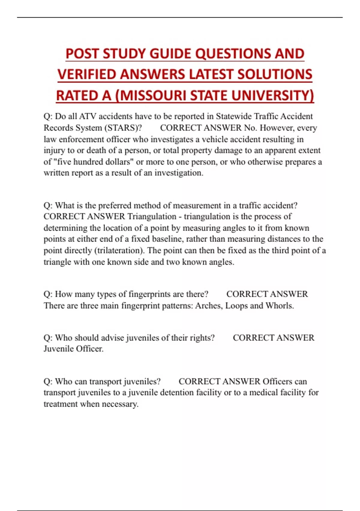 POST STUDY GUIDE QUESTIONS AND VERIFIED ANSWERS LATEST SOLUTIONS RATED A (MISSOURI STATE UNIVERSITY)