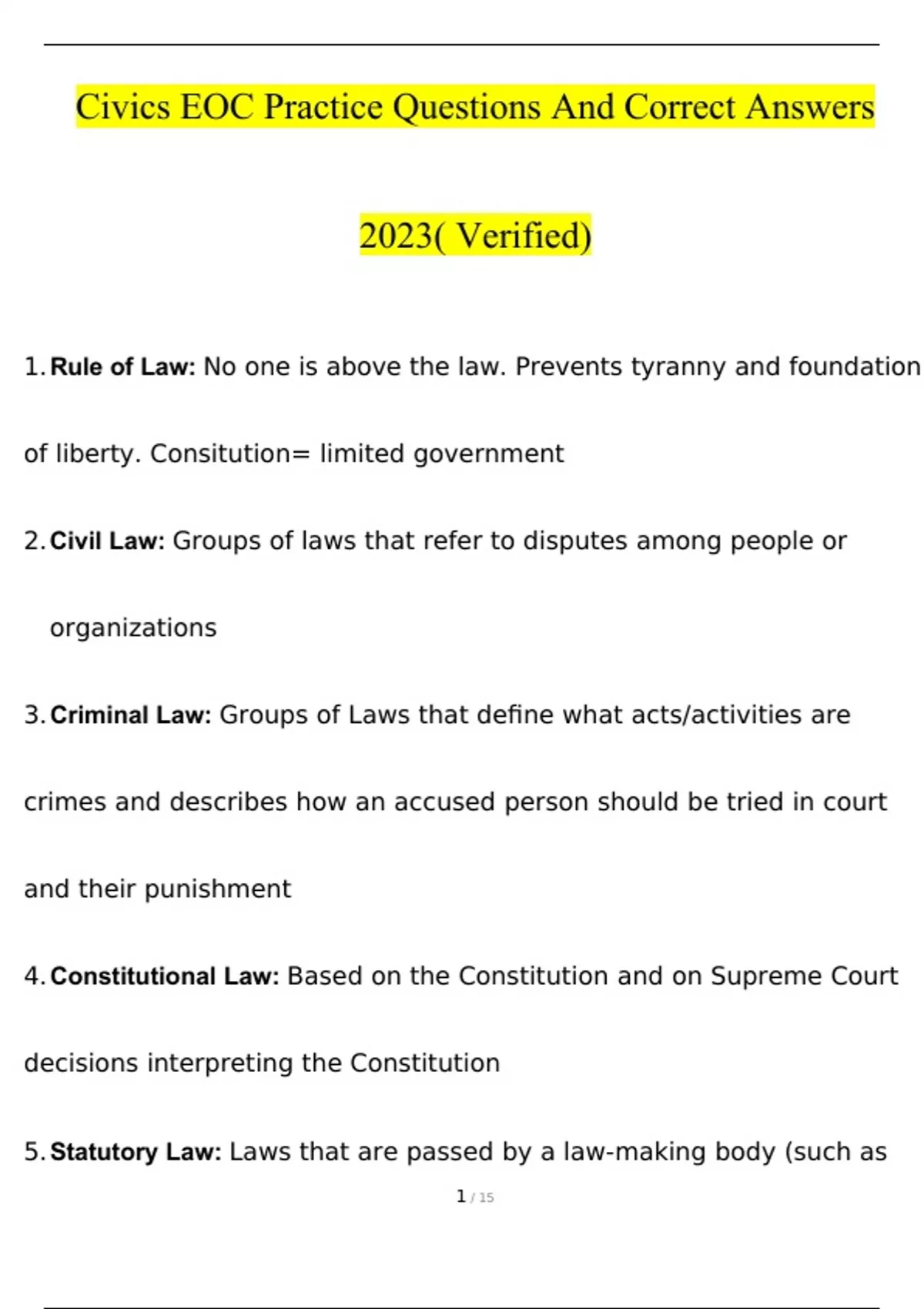 Civics EOC Practice Questions And Answers With Verified Test 2023