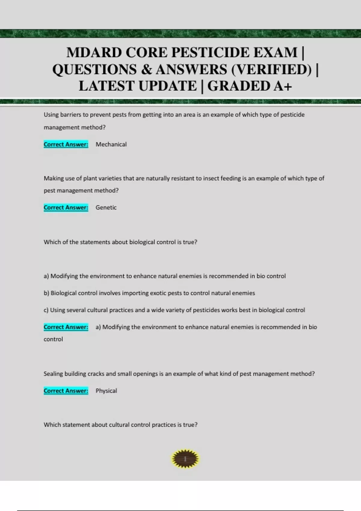 MDARD CORE PESTICIDE EXAM | QUESTIONS & ANSWERS (VERIFIED) | LATEST UPDATE | GRADED A+