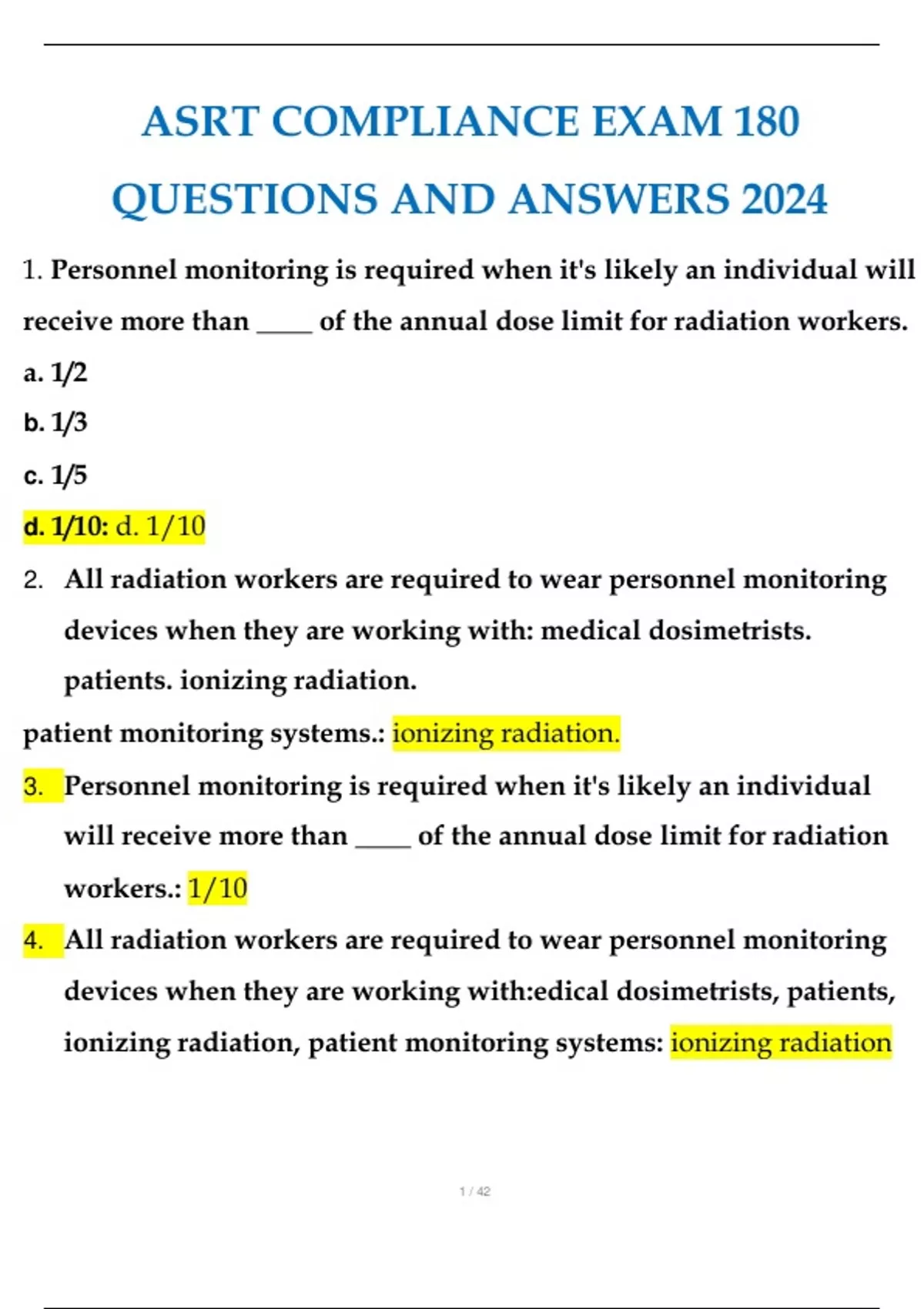 4. All radiation workers are required to wear personnel monitoring