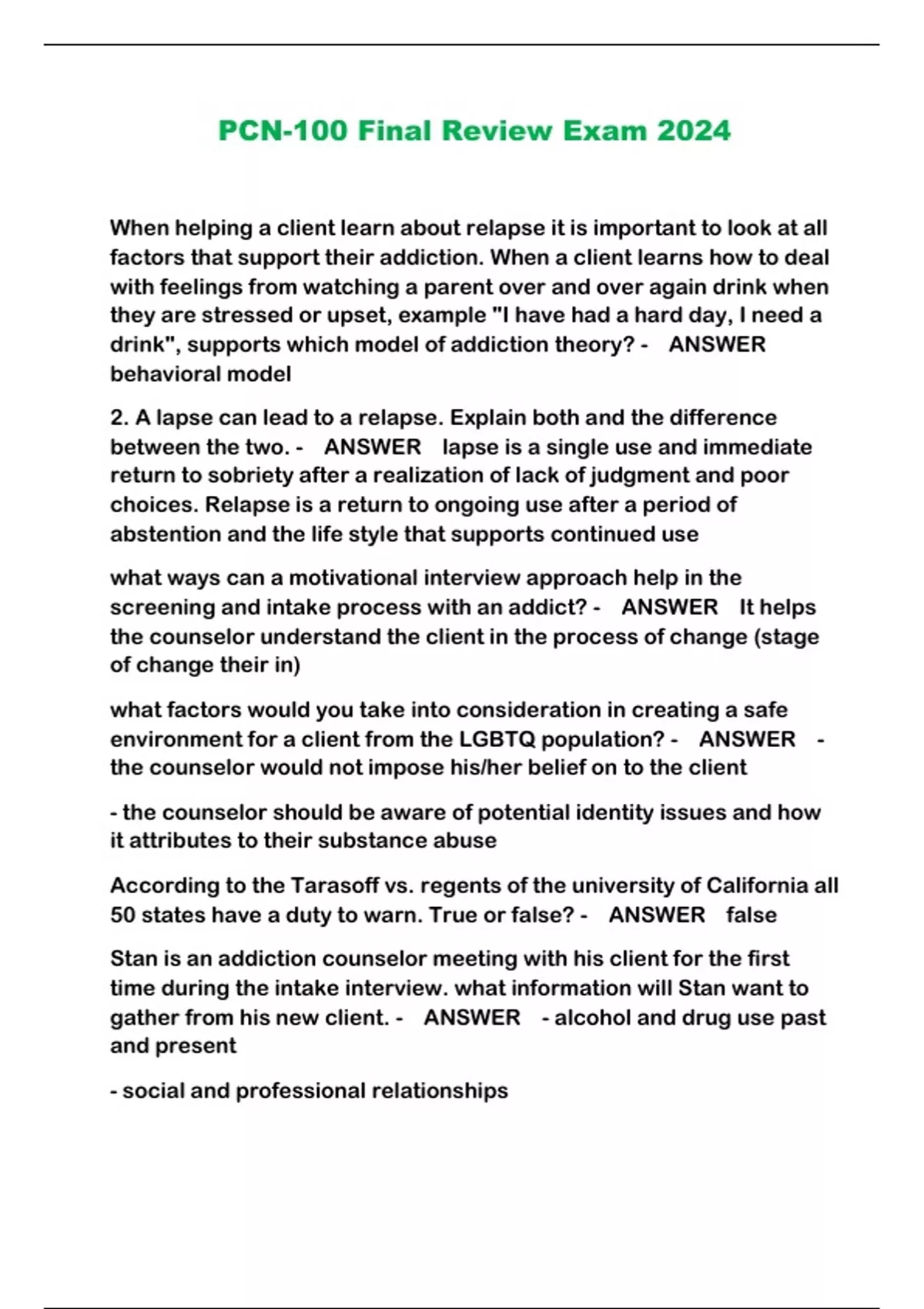 PCN 100 /PCN100 PACKAGED EXAMS LATEST UPDATE2024