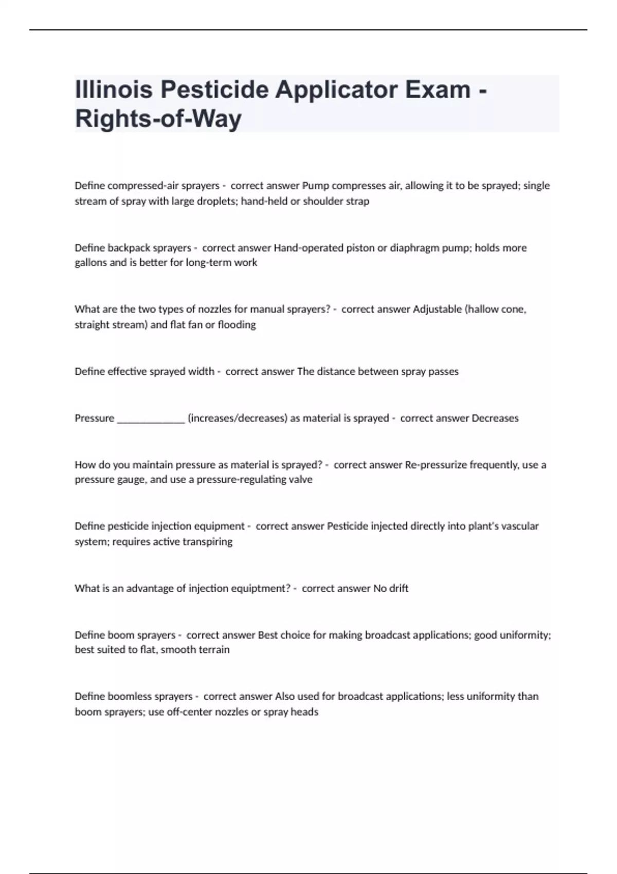 Illinois Pesticide Applicator Exam - Rights-of-Way questions and answers verified 2024