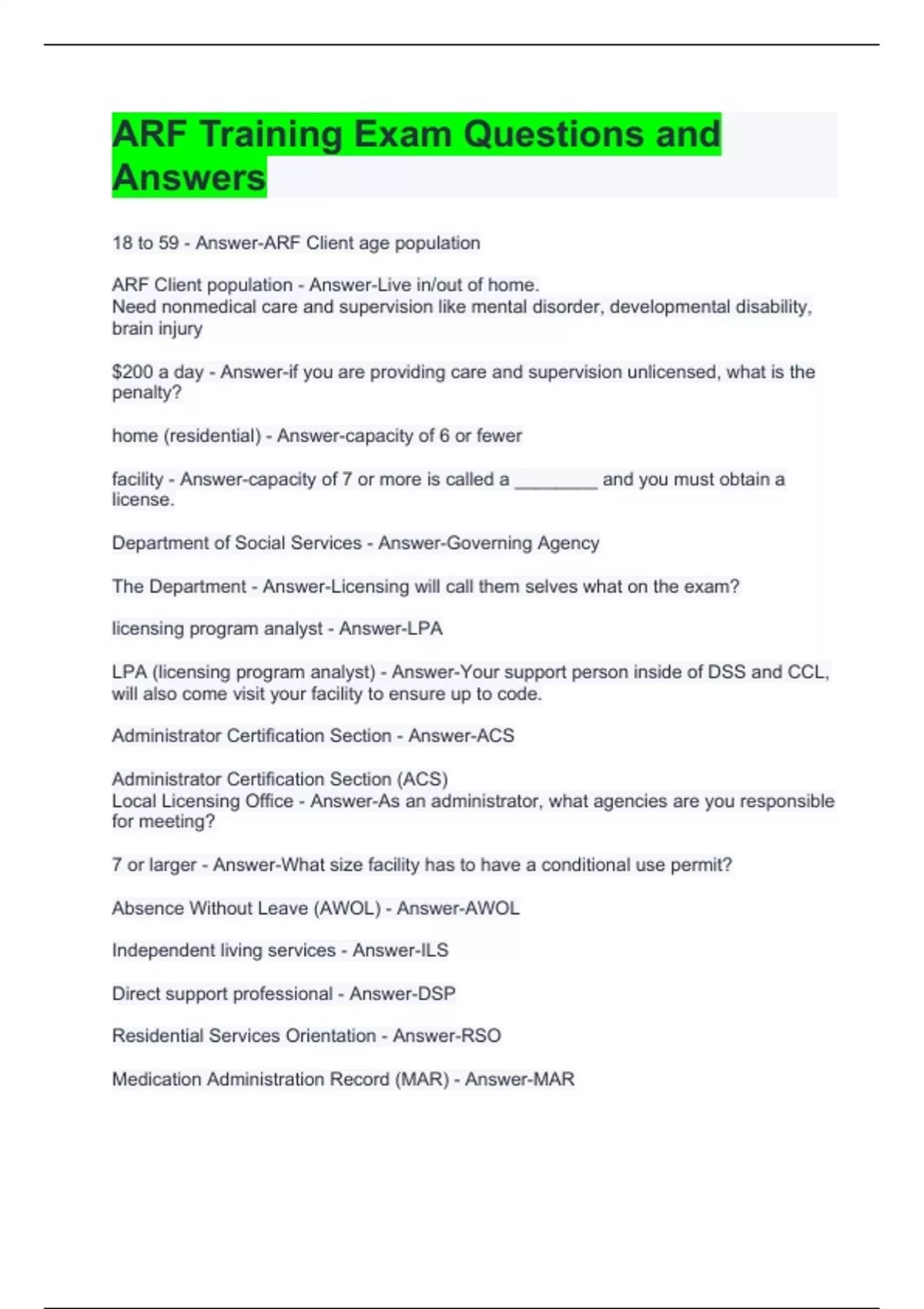 ARF Training Exam Questions and Answers