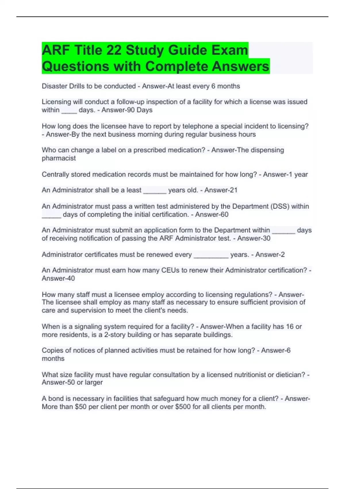 Disaster Drills to be conducted - Answer-At least every 6 months