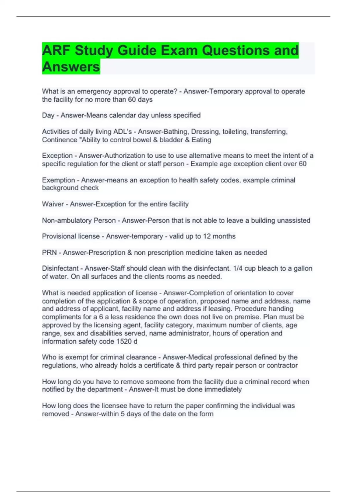 arf study guide exam questions and answers