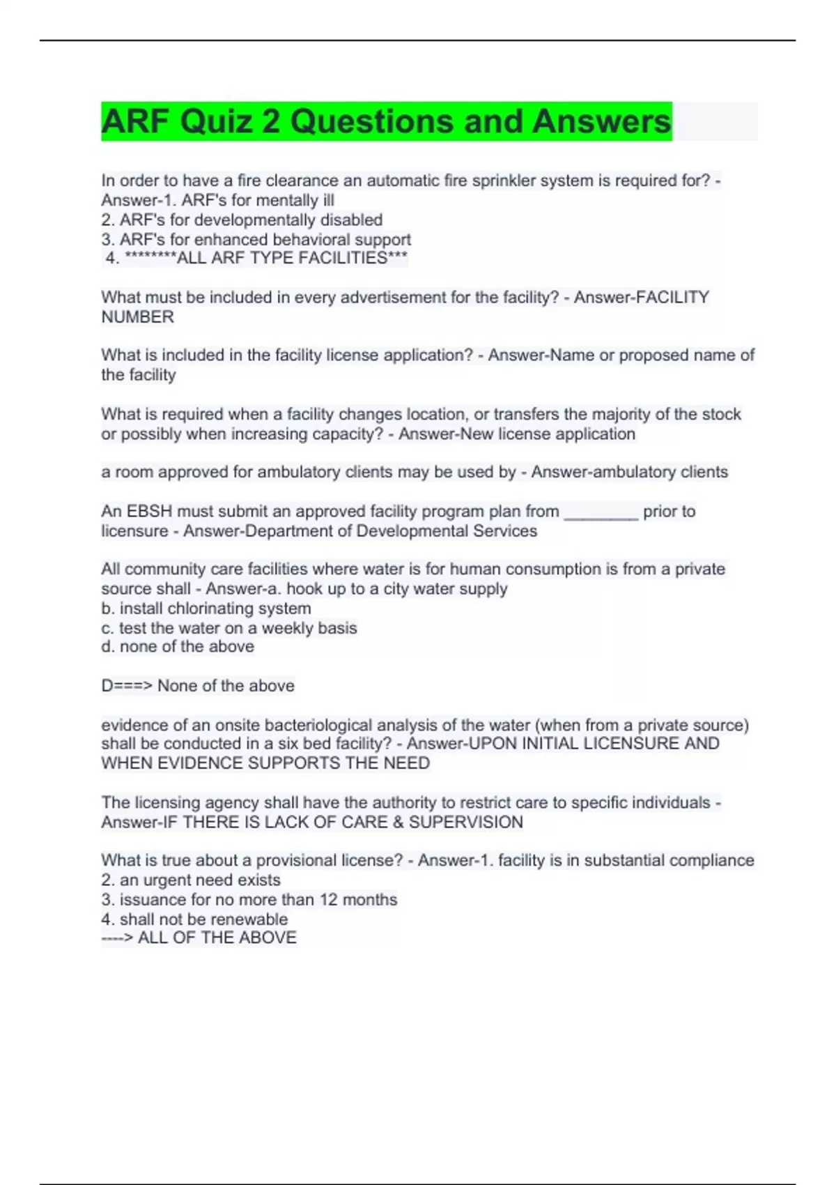 ARF Quiz 2 Questions and Answers