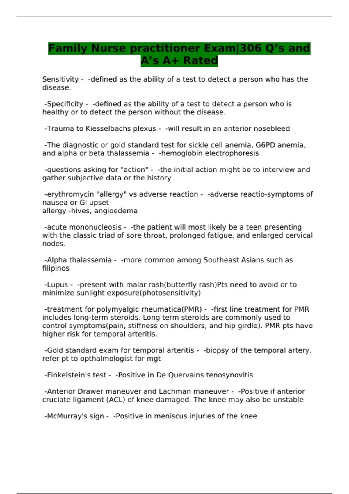 Family Nurse practitioner Exam|306 Q’s and A’s A+ Rated