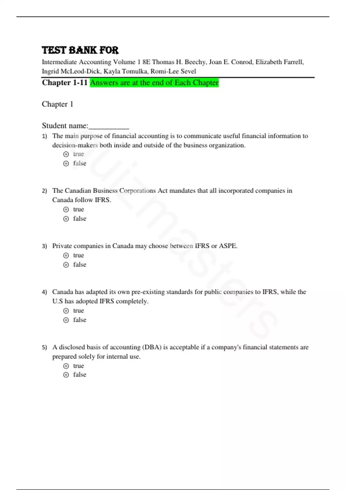 Test Bank for Intermediate Accounting Volume 1 8th Edition Thomas H. Beechy, Joan E. Conrod, Elizabeth Farrell, Ingrid McLeod-Dick, Kayla Tomulka, Romi-Lee Sevel