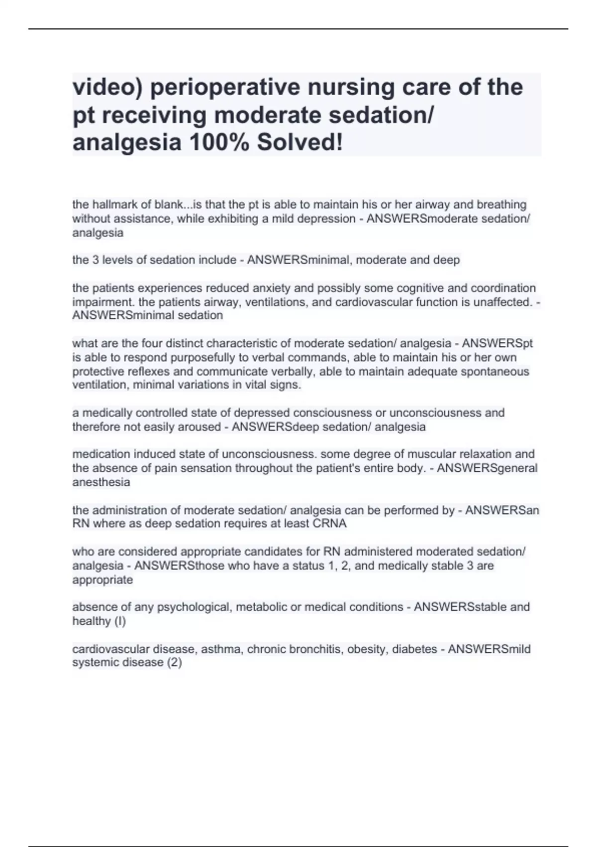 video) perioperative nursing care of the pt receiving moderate sedation/ analgesia 100% Solved!