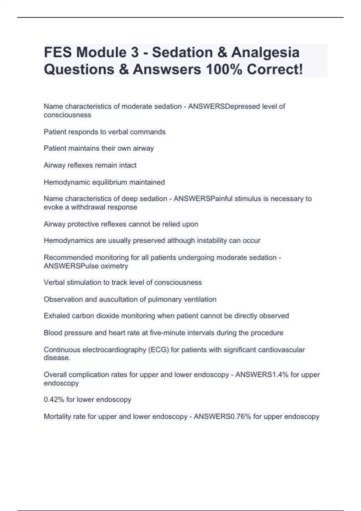 FES Module 3 - Sedation & Analgesia Questions & Answsers 100% Correct!