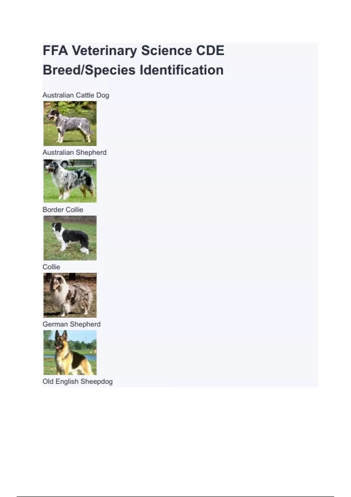 - FFA Veterinary Science CDE Breed/Species Identific