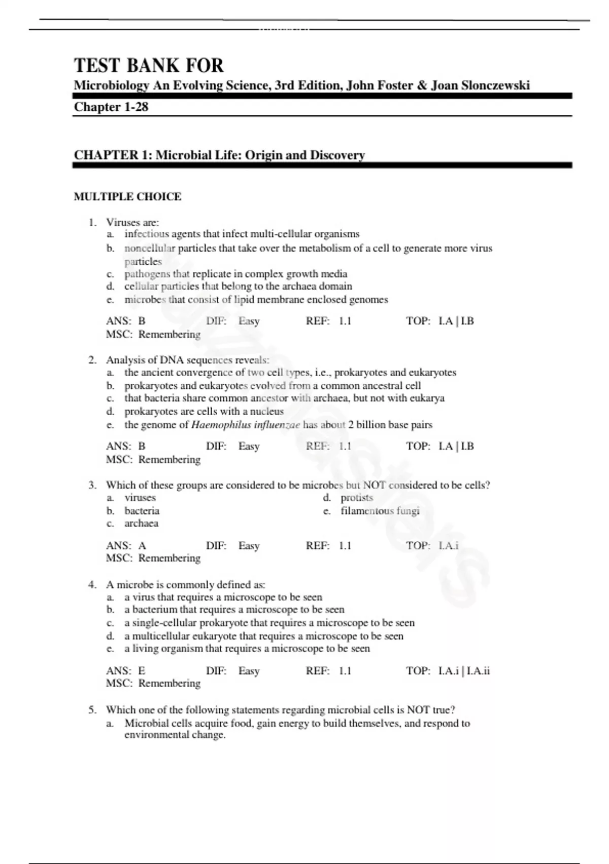 Test Bank for Microbiology An Evolving Science, 3rd Edition, John Foster & Joan Slonczewski